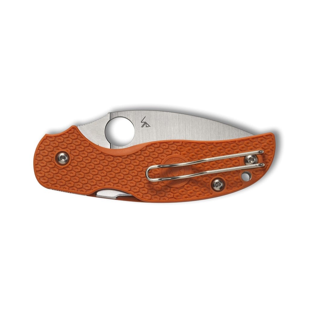 Seria Sage przedstawia trzydziestoletnie osiągnięcia firmy Spyderco w zakresie pionierskich i innowacyjnych sposobów produkcji noży. Piąta generacja to wersja posiadająca opatentowany mechanizm blokujący Compression Lock, który pewnie utrzymuje ostrze, gdy jest w użyciu oraz pozwala szybko i bezpiecznie zamknąć folder. Klingę o profilu Leaf Shaped wykonano z amerykańskiej stali narzędziowej klasy premium CPM REX 121 produkowanej przez Crucible Industries. Charakteryzuje się ekstremalną twardością i doskonałym trzymaniem ostrości. Zawiera w składzie ponad trzy procent węgla i duże ilości wolframu, molibdenu, wanadu i kobaltu. Wykończenie głowni metodą Satin pozostawia drobne ryski lekko matujące powierzchnię, co daje efekt niedokładnego wypolerowania. Ostrze posiada perfekcyjnie umiejscowiony okrągły otwór do szybkiego rozkładania narzędzia jedną ręką. Karbowany grzbiet klingi daje stabilne podparcie dla kciuka świetnie stabilizując palec i ułatwiając precyzyjne cięcie. Niewielka waga konstrukcji to zasługa przede wszystkim rękojeści zrobionej z nylonu wzmocnionego włóknem szklanym w pomarańczowym kolorze. Jej dwukierunkowa tekstura o antypoślizgowych właściwościach gwarantuje pewny chwyt i dobrą przyczepność do dłoni użytkownika. Na zakończeniu umieszczono otwór umożliwiający przełożenie breloka ozdobnego lub paracordu. Całość dopełnia dwupozycyjny klips mocujący o drucianej budowie, do wygodnego przenoszenia foldera w kieszeni spodni lub przy wyposażeniu. Model Sage 5 oferuje wydajności na najwyższym poziomie i niezawodności w każdych warunkach. Stanowi nie lada gratkę dla kolekcjonerów i wszystkich fanów marki Spyderco.