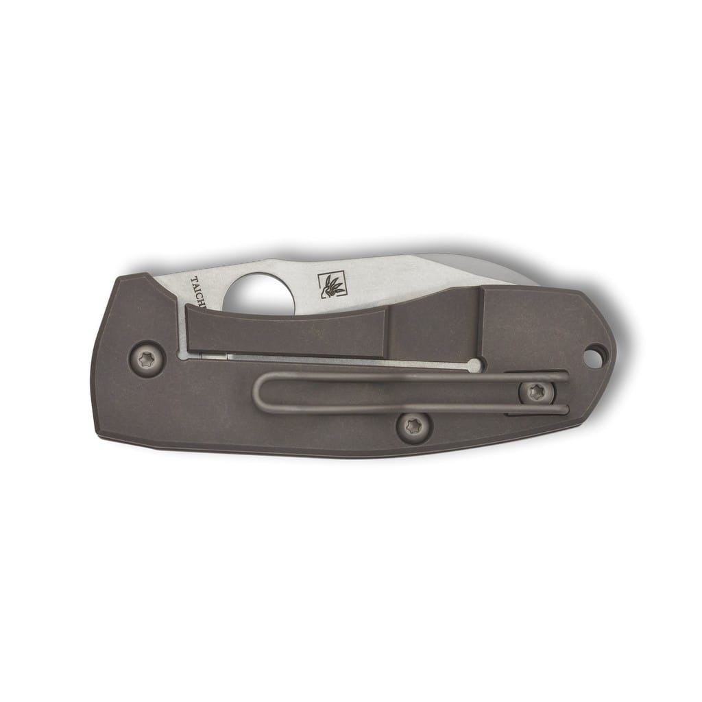 Folder Techno powstał przy współpracy amerykańskiej firmy Spyderco z polskim projektantem noży Marcinem Szłyszem. Jego sylwetka jest masywna a jakość użytych materiałów na najwyższym poziomie. Ostrze o charakterystyce Sheepsfoot wykonano ze stali klasy premium jaką jest CTS XHP i wykończono metoda stonewash pozostawiajacą drobne ryski lekko matujące powierzchnię. Tytanowa rękojeść dzięki odpowiedniemu wyprofilowaniu pomimo, iż jest niewielka doskonale układa się dłoni. Szybkie wysunięcie ostrza jedną ręką umożliwia duży otwór na klindze, charakterystyczny dla producenta Spyderco. Karbowana górna krawędź głowni stanowi idealne podparcie dla palca. Nad bezpieczeństwem pracy czuwa solidna blokada Frame Lock. Całość uzupełnia otwór na linkę oraz druciany klips, który może zostać zamocowany po obu stronach rękojeści.
