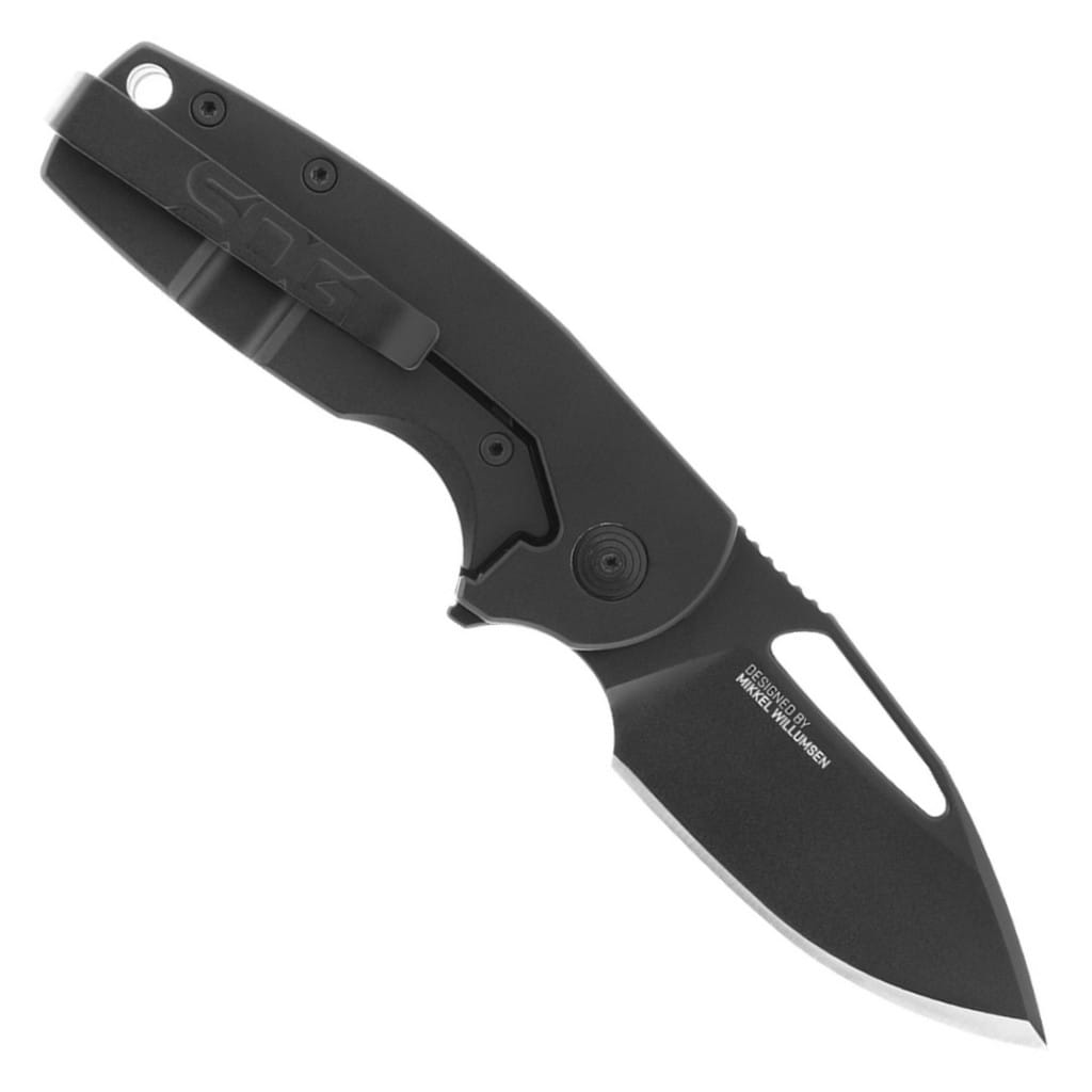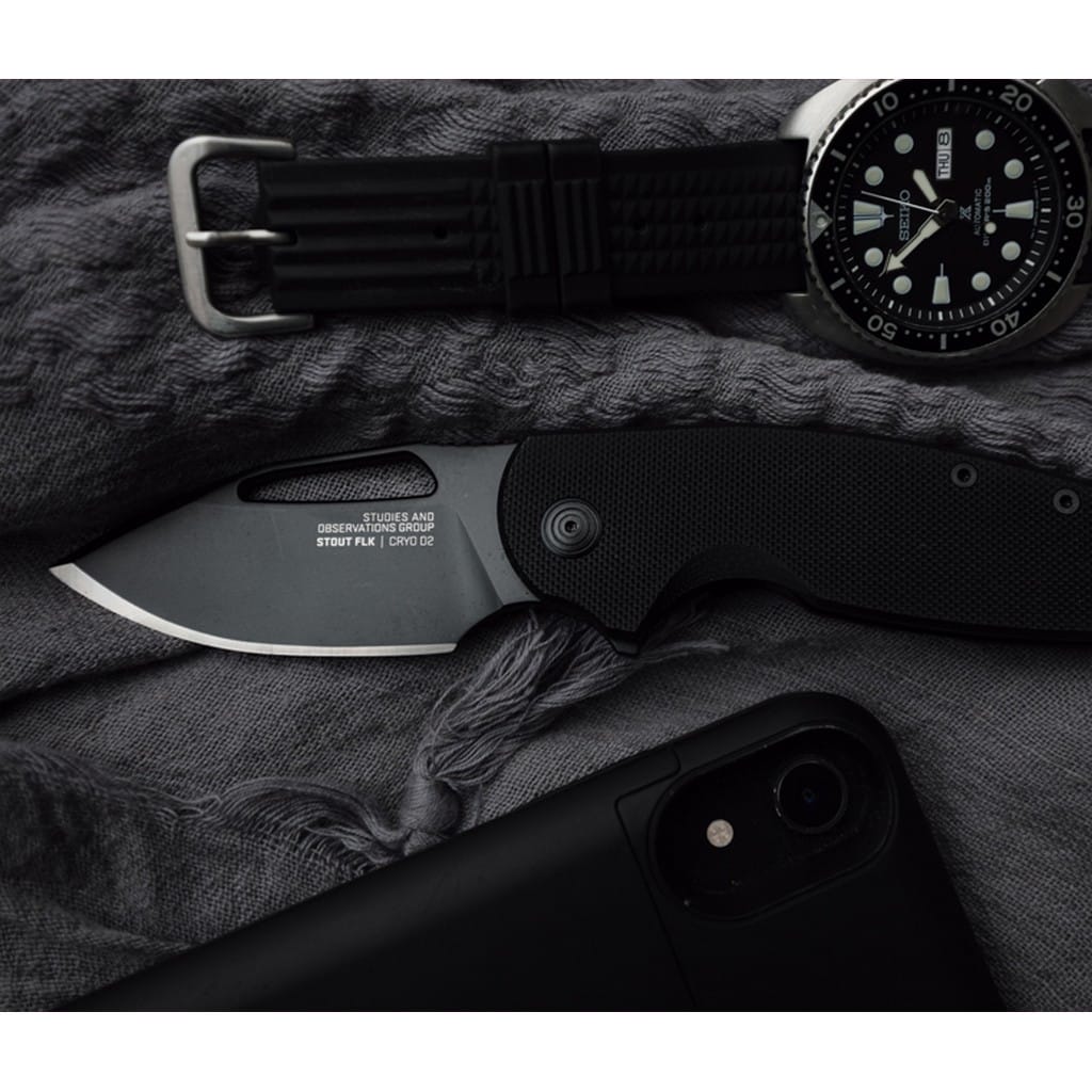 Stout FLK to odważny projekt kompaktowego noża EDC, który powstał przy współpracy firmy Sog z duńskim knifemakerem Mikkelem Willumsenem. Model posiada ostrze o uniwersalnym profilu Clip Point wykonane z wysokiej jakości stali narzędziowej D2 poddanej kriogenicznej obróbce cieplnej, dzięki czemu pozostaje ona dłużej ostra i jest bardziej odporna na pęknięcia i wykruszenia. Pokrycie jej czarną powłoką eliminuje odblaski świetlne oraz nadaje taktyczny wygląd całej konstrukcji. Klinga wysuwa się błyskawicznie przy wykorzystaniu sporych rozmiarów otworu na głowni lub flippera. Solidna i niezawodna blokada Frame Lock chroni przed przypadkowym złożeniem się narzędzia gdy jest w użyciu. Dodatkowo bezpieczeństwo pracy poprawia karbowany grzbiet ostrza stanowiący stabilne podparcie dla kciuka. Rękojeść to połączenie lekkiego i wytrzymałego tworzywa G10 o antypoślizgowej fakturze na jednej ze stron, ze stalą nierdzewną na drugiej. Odpowiednie wyprofilowanie chwytu z głębokim wcięciem pod palec poprawia komfort użytkowania i przyczepność do dłoni. Całość uzupełnia otwór na linkę typu paracord oraz dwupozycyjny klips mocujący do głębokiego przenoszenia noża w kieszeni spodni lub przy wyposażeniu. Stout FLK pomimo niedużych rozmiarów doskonale sprosta wyzwaniom dnia codziennego.