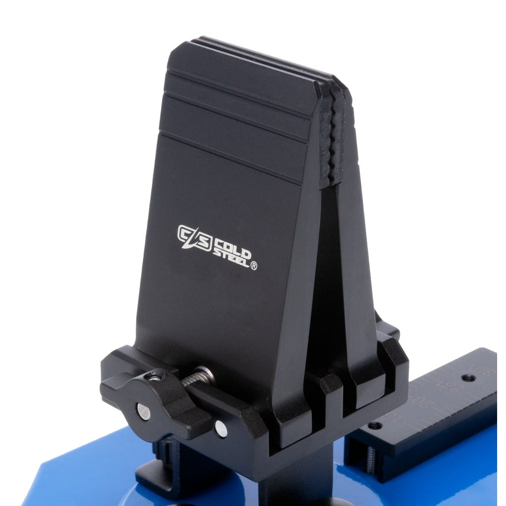 Stołowa ostrzałka do noży zaprojektowana przez renomowaną firmę Cold Steel. System umożliwia ostrzenie pod dowolnym kątem w zakresie 15°-30° dostosowując się w ten sposób do indywidualnych potrzeb użytkownika. Zestaw składa się z solidnej, ciężkiej podstawy o antypoślizgowych nóżkach, którą należy ustawić na blacie roboczym; zacisku do noży o bezpiecznej dla ostrza budowie; śrub mocujących; regulatora kąta ostrzenia; dwóch bloczków z wbudowaną na każdej ze stron płytką diamentową o innej gradacji oraz stalowego pręta służącego do mocowania kamienia. Całość dopełnia sztywna skrzynka do wygodnego i bezpiecznego przechowywania lub transportowania systemu ostrzącego. Dodatkową zaletą ostrzałki jest fakt, że zacisk do noża możemy obrócić o 180°, aby naostrzyć drugą stronę ostrza, bez konieczności zdejmowania go z zacisku. Cold Steel Benchtop to doskonałe narzędzie, które idealnie zaopiekuje się naszymi nożami bez względu na ich poziom stępienia.