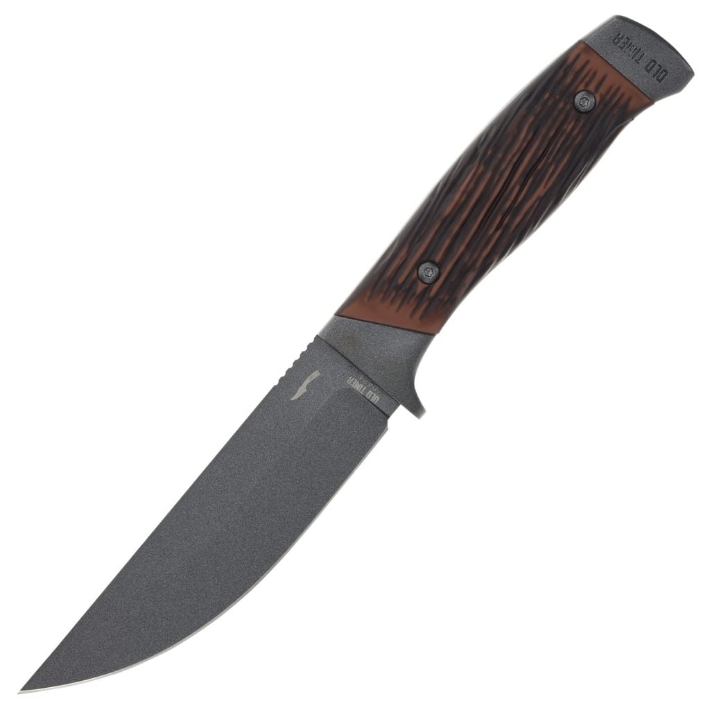 Frontier 131OTF firmy Old Timer to solidny nóż myśliwsko-outdoorowy z ostrzem stałym, który świetnie sprawdzi się do aktywności na świeżym powietrzu. Jego tradycyjny wygląd nawiązuje do minionej epoki, lecz okazała konstrukcja full tang skrywa nowoczesne rozwiązania. Stanowi doskonały wybór dla miłośników terenowej przygody. Model posiada uniwersalną, szeroką klingę o profilu Clip Point wykonaną ze stali nierdzewnej 7Cr17. W celu zabezpieczenia głowni przed korozją i negatywnym działaniem czynników zewnętrznych pokryto ją szarą i antyodblaskową powłoką ochronną. Bezpieczeństwo pracy wspomaga karbowany grzbiet ostrza dający stabilne wsparcie dla kciuka oraz jelec chroniący palce przed ich przypadkowym zsunięciem się na krawędź tnącą. Rękojeść to połączenie stali z okładzinami zrobionymi z syntetycznego drewna, gotowego przetrwać próbę czasu. Stalowa głowica z powodzeniem może posłużyć również jako młotek w awaryjnej sytuacji. Całość dopełnia skórzana pochwa umożliwiająca wygodne przenoszenie noża na pasku spodni, blisko ciała. Nóż Frontier 131OTF jest idealną propozycją na prezent, który z powodzeniem może być przekazywany z pokolenia na pokolenie dla zachowania pamięci o bliskich osobach, które już odeszły. Old Timer to amerykańska firma z ponad 60 letnią przeszłością, produkująca kompaktowe i przystępne cenowo narzędzia do codziennej pracy, stanowiące połączenie ducha dawnych czasów i innowacyjności.