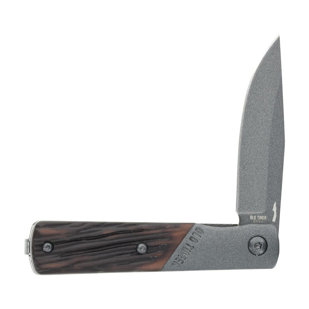 Frontier Barlow firmy Old Timer to uosobienie uroku ponadczasowego scyzoryka. Jego tradycyjny wygląd nawiązuje do minionej epoki, lecz kompaktowa konstrukcja skrywa nowoczesne rozwiązania. Model posiada uniwersalną głownię o profilu Clip Point wykonaną ze stali nierdzewnej 7Cr17. W celu zabezpieczenia klingi przed korozją i negatywnym działaniem czynników zewnętrznych pokryto ją szarą i antyodblaskową powłoką ochronną. Wspomaganie wysuwania ostrza Nitro Assisted, w postaci wewnętrznej sprężyny, sprawia że folder jest gotowy do działania w ułamku sekundy. W rozkładaniu noża pomaga nieduży flipper o karbowanej powierzchni. Blokada Liner Lock dba o bezpieczeństwo użytkownika czuwając przed przypadkowym złożeniem się narzędzia, gdy jest w użyciu. Rękojeść to połączenie stalowego bolstera z okładzinami zrobionymi z syntetycznego drewna, które przetrwają upływ czasu. Całość dopełnia dwupozycyjny klips mocujący do głębokiego przenoszenia foldera w kieszeni spodni lub przy wyposażeniu. Frontier Barlow stanowi doskonały pomysł na prezent dla członka rodziny lub przyjaciela. Przekazywany z pokolenia na pokolenie będzie mógł przypominać o osobach, które już odeszły. Old Timer to amerykańska firma z ponad 60 letnią przeszłością, produkująca kompaktowe i przystępne cenowo narzędzia do codziennej pracy, stanowiące połączenie nostalgii i innowacyjności.