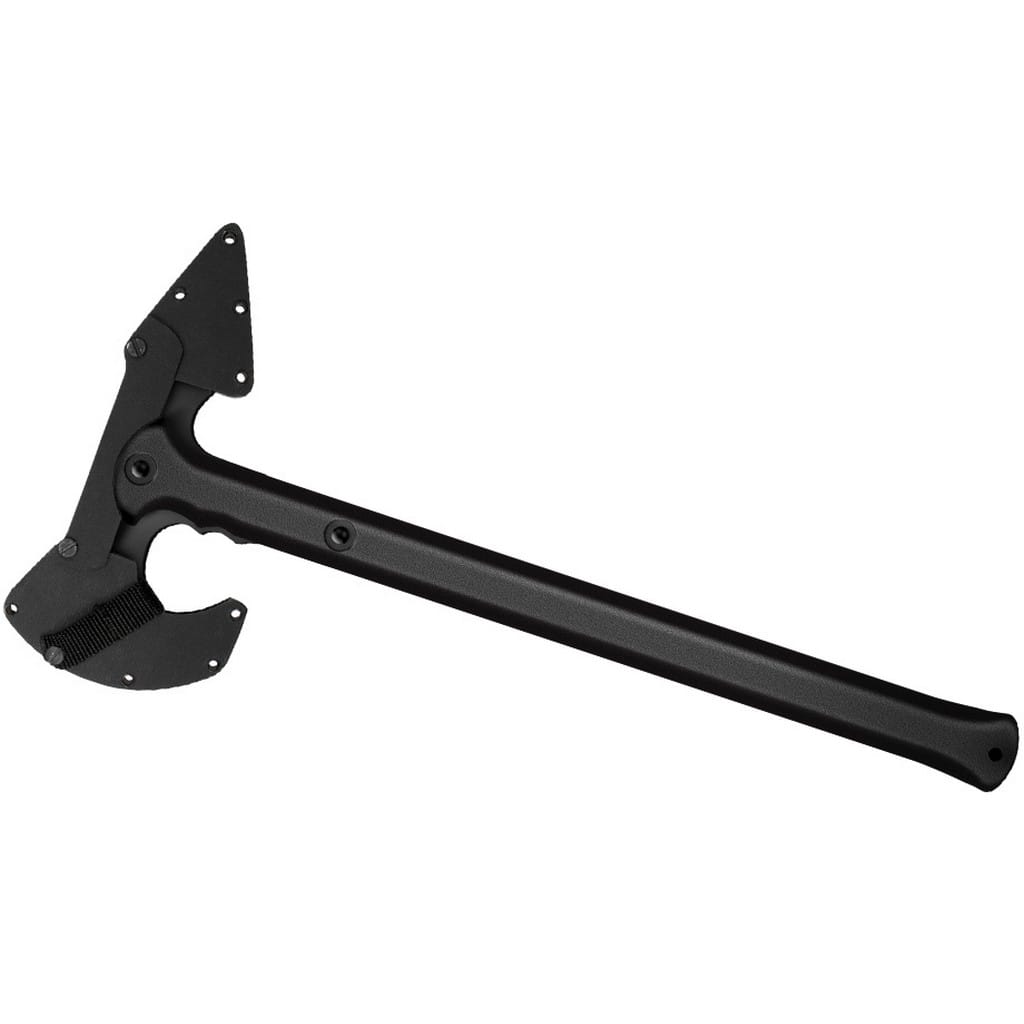 Toporek Trench Hawk firmy Cold Steel to świetne narzędzie do pracy w terenie. Ostrze zostało wykonane ze stali węglowej 1055, a rękojeść z Polipropylenu, który jest odporny na zużycie. Na zakończeniu znajduje się otwór na linkę służący do zamocowania paracordu i stworzenia oplotu na nadgarstek. Model na jednej ze stron posiada ostrze, które świetnie nadaje się do rąbania, rozłupywania i cięcia, zaś po przeciwległej stronie szpiczasty i ostry kolec umożliwiający przebijanie oraz dziurawienie różnego rodzaju materiałów. To wszystko powoduje, że toporek jest odpowiedni nie tylko do zastosowań taktycznych, ale również jako narzędzie survivalowe na wyprawę do lasu czy na kemping. Całość uzupełnia funkcjonalna pochwa z Secure-Ex do bezpiecznego transportowania tomahawka.