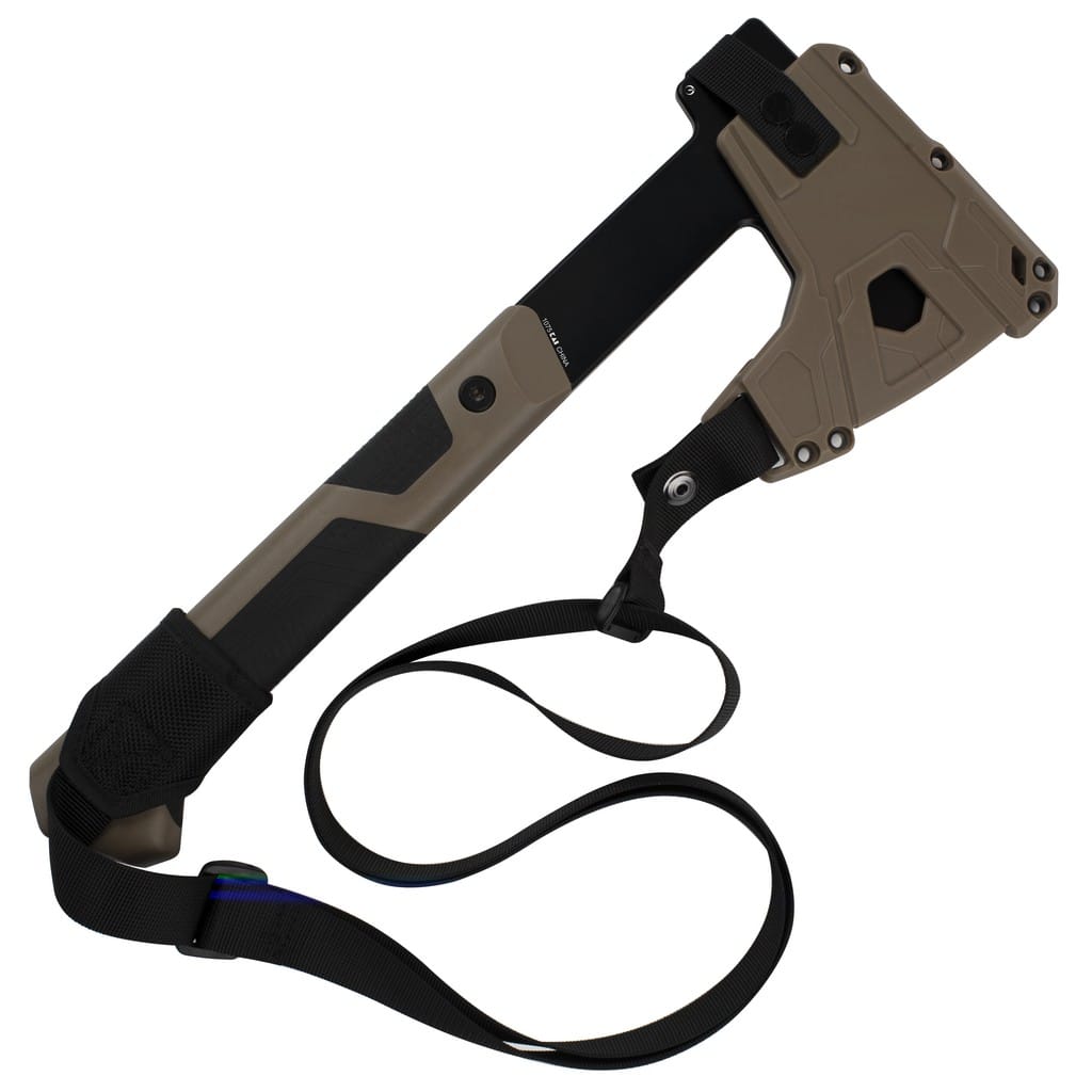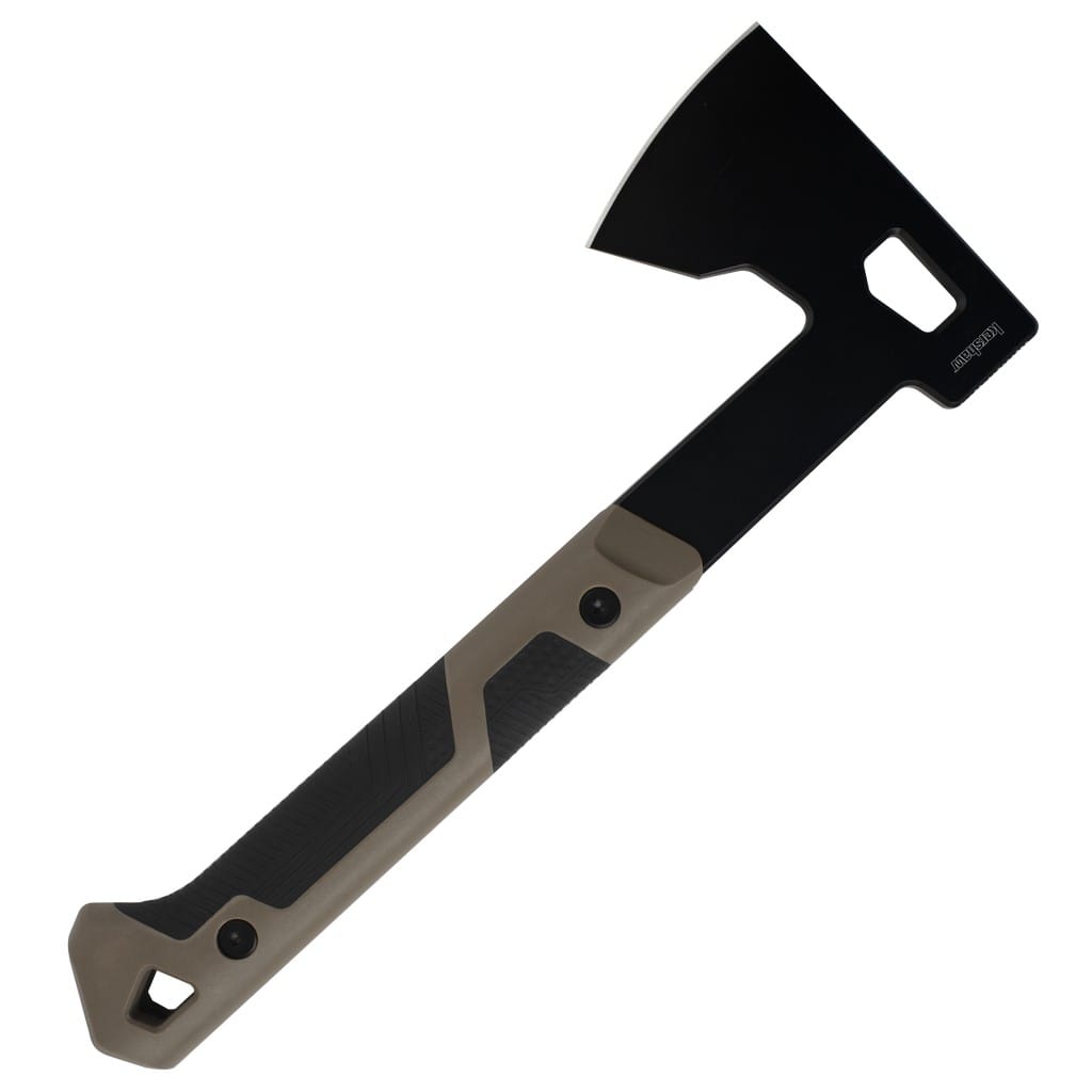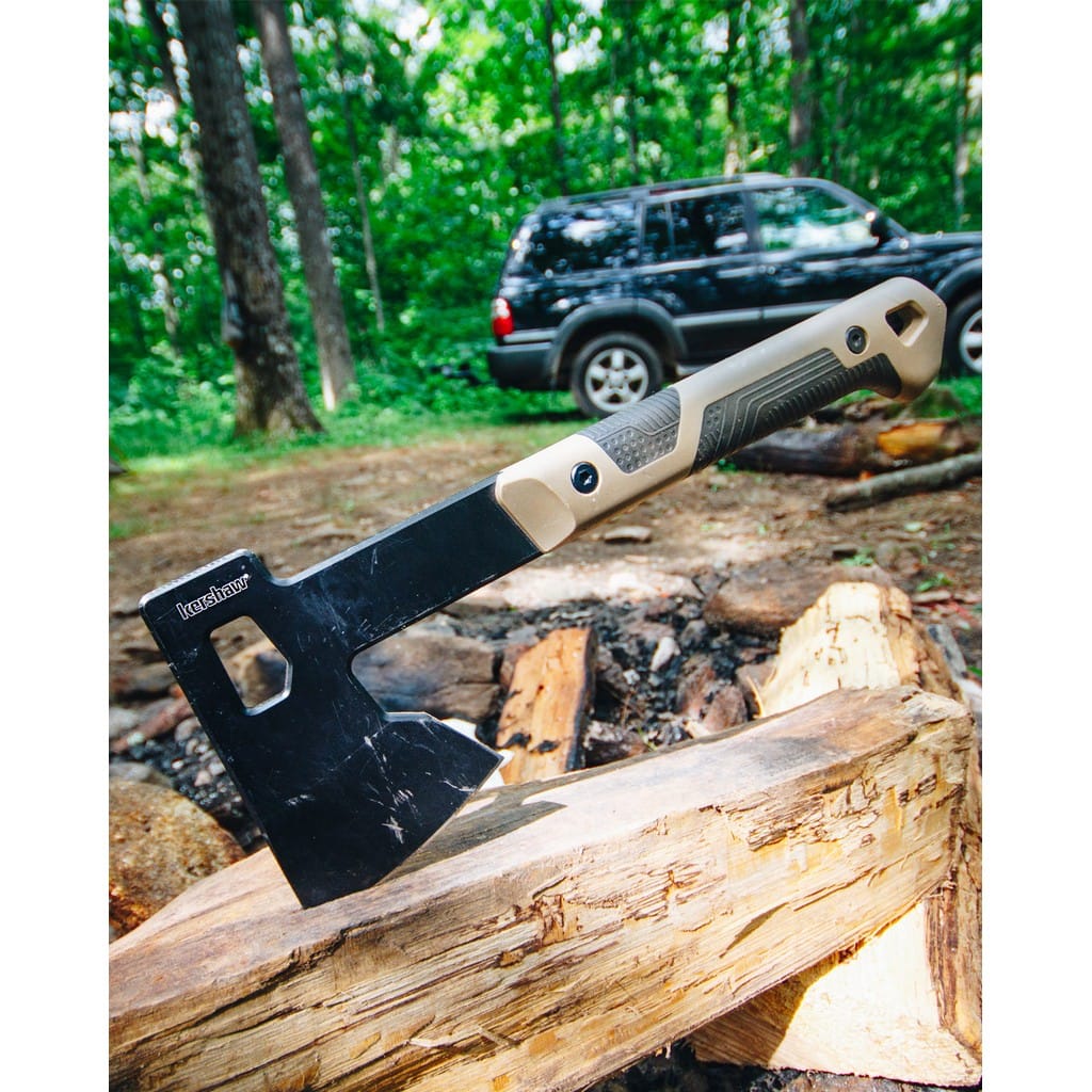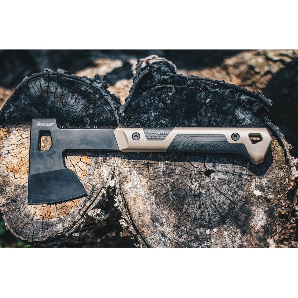 Ludzie od tysiącleci używają siekiery do rąbania drewna i innych zadań obozowych. Deschutes to nowoczesna wersja toporka zaprojektowana przez amerykańską firmę Kershaw, z myślą o wydajnej pracy w terenie. Głownia została wykonana ze stali nierdzewnej 3Cr13 i pokryta czarną oksydą zabezpieczającą przed korozją i negatywnym działaniem czynników zewnętrznych. Dodatkowo na jej przeciwległym końcu znajduje się tępe zakończenie, które możemy wykorzystać jako młotek do wbijania śledzi namiotowych oraz do rozbijania twardych przedmiotów. Rękojeść z nylonu wzmocnionego włóknem szklanym wzbogacono o gumowe wstawki. Dzięki czemu pewnie leży w dłoni gwarantując komfort użytkowania. Na zakończeniu znajduje się spory otwór umożliwiający zamocowanie toporka na wieszaku, co ułatwia jego przechowanie. Całość dopełnia pochwa z tworzywa pozwalająca na bezpiecznego przenoszenie narzędzia na ramieniu za pomocą paska znajdującego się również w zestawie. Deschutes to doskonały wybór do prac na świeżym powietrzu bez względu od pory roku i dnia.