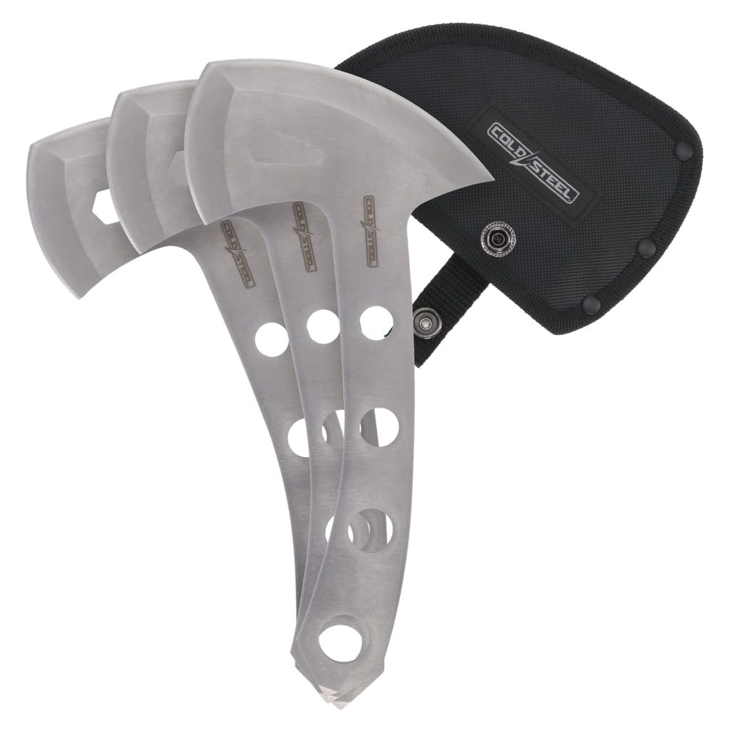 Zestaw trzech toporków firmy Cold Steel zaprojektowanych, aby przenieść jakość rzucania do celu na wyższym poziom. Każdy egzemplarz został wykonany z jednego kawałka wytrzymałej stali nierdzewnej 420 o satynowym wykończeniu. Podłużne otwory na rękojeści odciążają konstrukcję sprawiając, że rzuca się nimi łatwo i precyzyjnie. Toporki są odpowiednio zbalansowane co czyni z nich doskonałe narzędzie do trenowania na świeżym powietrzu. W komplecie znajduje się czarny pokrowiec z nylonu zabezpieczający wszystkie ostrza toporków podczas transportu.