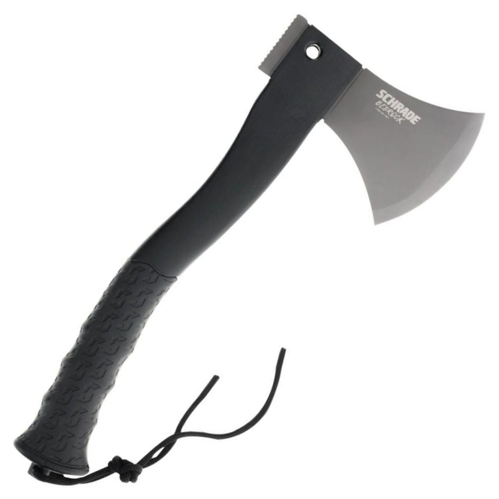 Bedrock firmy Schrade to kompaktowy toporek, który szybko stanie się nieodzownym towarzyszem każdej wyprawy survivalowej. Głownia została wykonana ze stali nierdzewnej 3Cr13MoV oraz wykończona powłoką tytanową TiNi w grafitowym kolorze, w celu zabezpieczenia przed korozją. Dodatkowo na jej przeciwległym końcu znajduje się tępe zakończenie pełniące funkcję młotka, dzięki czemu narzędzie może posłużyć nam również do wbijania gwoździ, śledzi namiotowych oraz do rozbijania twardych przedmiotów. Rękojeść z tworzywa w miejscu chwytu pokryto gumą o właściwościach antypoślizgowych, co sprawia, że świetnie układa się w dłoni, eliminuje drgania oraz gwarantuje komfortową pracę, nie męcząc ręki nawet przy dłuższym użytkowaniu. Na jej zakończeniu znajduje się otwór, w którym możemy schować dołączone do zestawu krzesiwo, a za pomocą linki wyciągnąć je ze styliska. Całość uzupełnia pochwa z poliestru do bezpiecznego transportowania narzędzia blisko ciała, na pasku spodni. Toporek Bedrock to doskonały wybór dla wszystkich miłośników bushcraftu i prac na świeżym powietrzu, którzy poszukują solidnego i niezawodnego sprzętu do zadań w terenie.