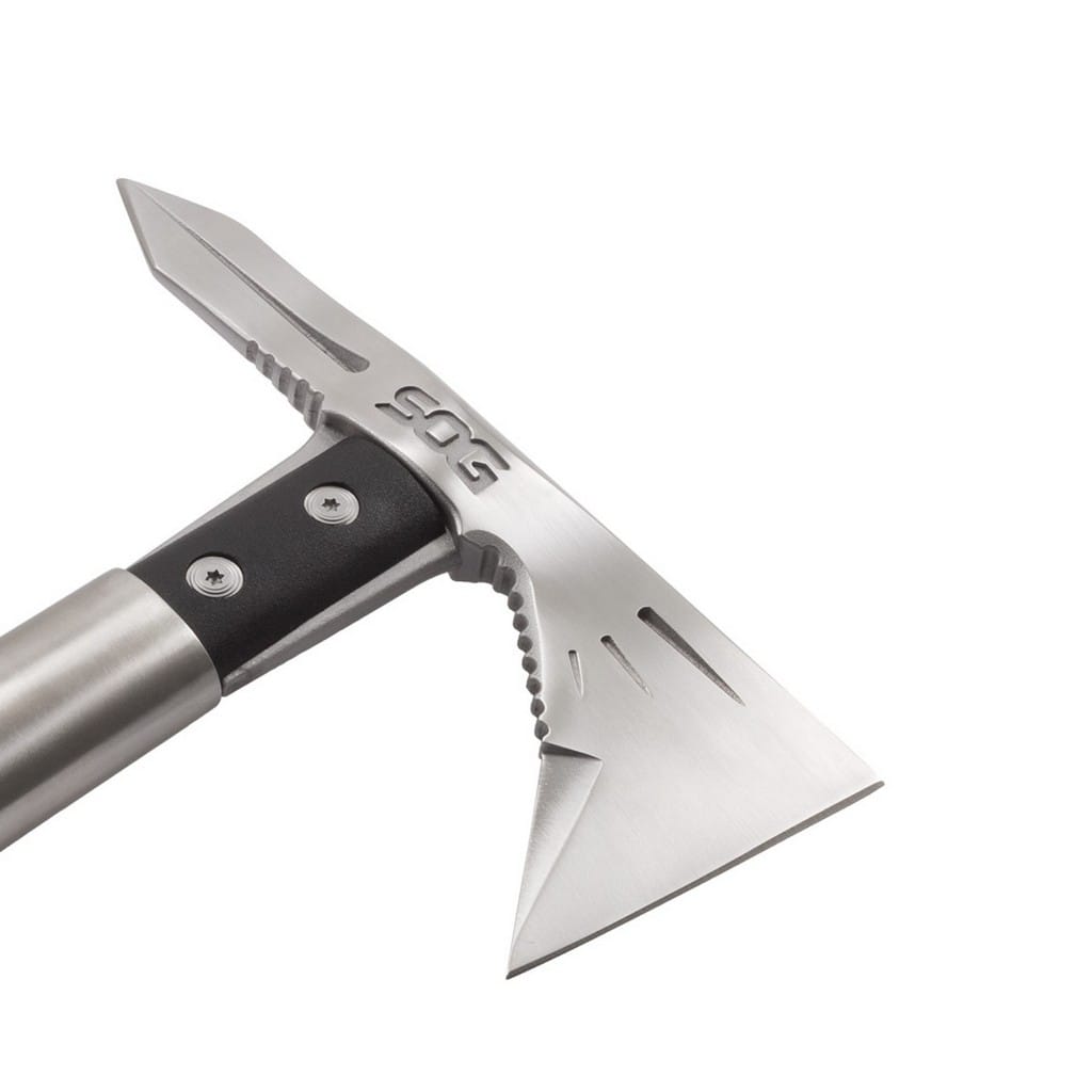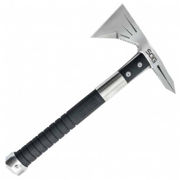 Voodoo Hawk firmy Sog to projekt łączący cechy taktycznego Tomahawka i Fasthawka w jednym, mniejszym i lżejszym wydaniu. Ta kompaktowa wersja toporka nadal posiada te same cenne właściwości: rozszerzona głowica tnąca, szpikulec do przebijania oraz metalowe zakończenie grzbietu trzonka. Wytrzymała rękojeść z nylonu wzmocnionego włóknem szklanym pewnie leży w dłoni i nie wyślizgnie się z niej przypadkowo. Voodo Hawk Mini sprawdzi się w czynnościach takich jak cięcie, rąbanie, dziurawienie, kopanie, podważanie, wbijanie, a nawet rzucanie. To doskonały wybór na wyprawę survivalową, do lasu, jak również do prac w ogrodzie. W komplecie znajduje się nylonowa pochwa zapinana na nap, dzięki której możemy zamocować toporek na pasie i wygodnie go przenosić.