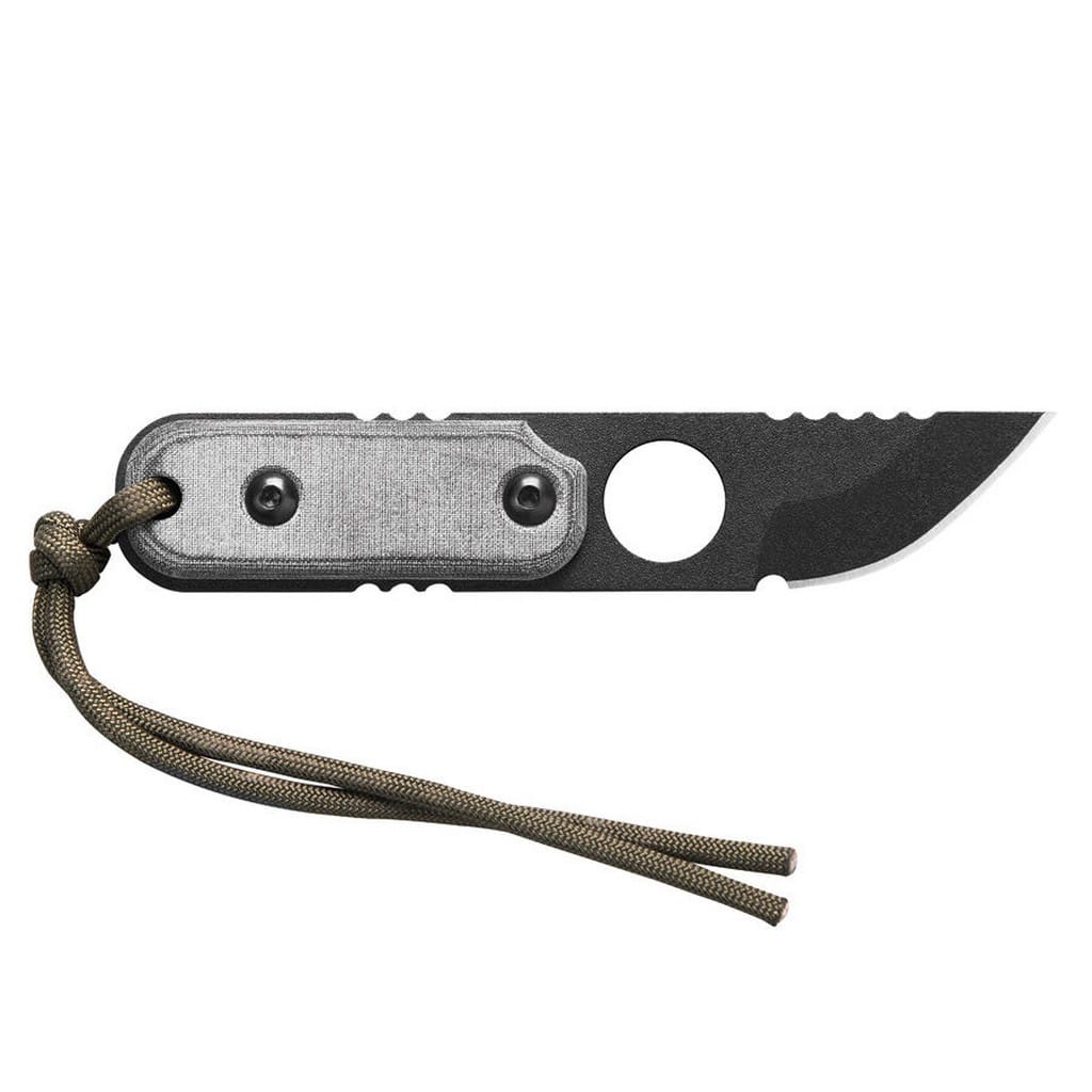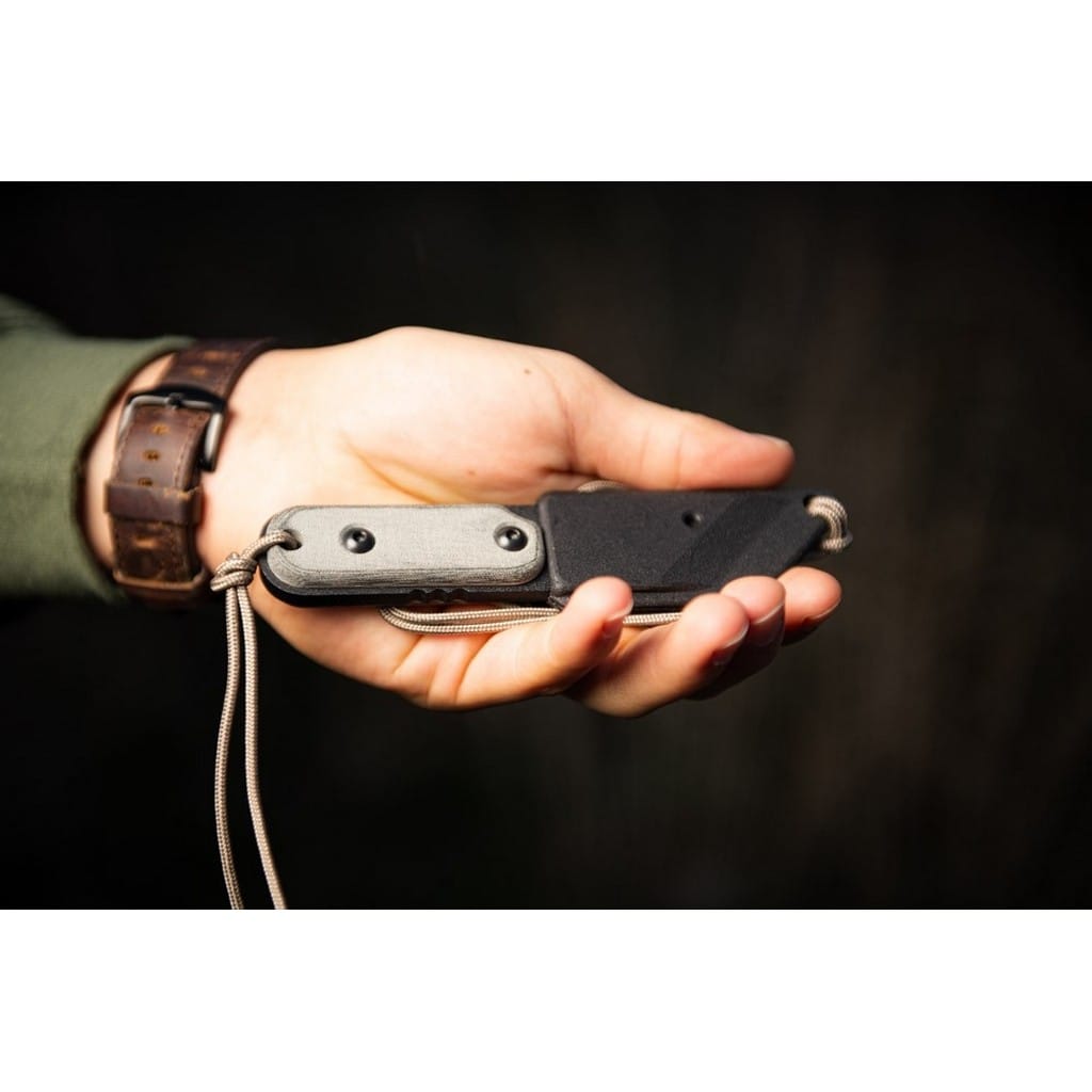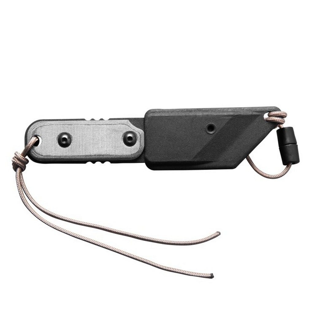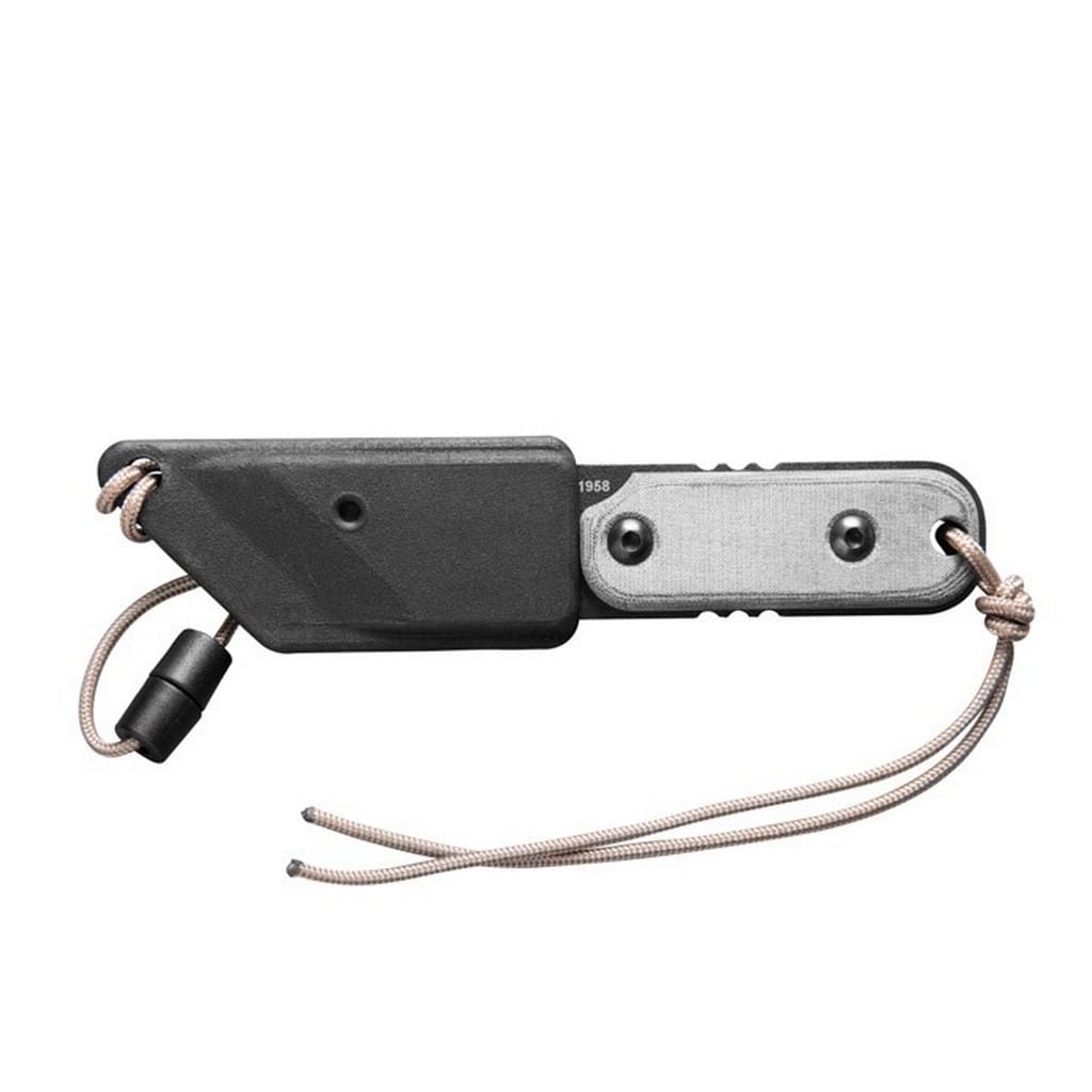 ALRT w wersji XL (Anywhere Last Resort) to kompaktowe, niezawodne i wyjątkowo wytrzymałe narzędzie zaprojektowane do codziennego użytku. Model możemy wygodnie przenosić na szyi, dzięki dołączonej do zestawu pochwie z kydexu wraz z linką paracord i zapięciem. Głownia o uniwersalnym profilu Drop Point została wykonana ze stali węglowej 1095 odpornej na wykruszenia i pęknięcia oraz niesprawiającej trudności w ostrzeniu. Pokryto ją powłoką Black Traction, która jest zastrzeżoną nazwą wykończenia stosowaną przez TOPS, składającą się z hybrydowej bazy epoksydowej z dodatkiem poliestru. Nakłada się ją proszkowo na ostrze i zapieka w piecu przez kilkanaście minut, w temperaturze około 210 stopni Celsjusza. Karbowane krawędzie i duży otwór na klindze ułatwiają chwytanie noża i sprawne posługiwanie się nim, a także poprawiają bezpieczeństwo pracy. Przymocowane śrubami do stalowej konstrukcji full tang okładziny rękojeści zrobiono z Micarty o fakturze płótna. Na zakończeniu znajduje się niewielka dziurka z zamocowaną linką ułatwiającą wyciąganie narzędzia z pochwy. Dodatkowo do zestawu dołączono gwizdek survivalowy o mocy 116 decybeli, który z powodzeniem możemy przytroczyć przy kluczach w formie breloka lub schować w kieszeni. ALRT XL to doskonały model EDC, który sprawdzi się w sytuacjach, gdy potrzebujemy szybko sięgnąć po ostrze i coś przeciąć. Misją TOPS Knives jest produkowanie noży najwyższej jakości, charakteryzujących się wydajnością i niezawodnością w terenie. Firma współpracuje z projektantami posiadającymi odpowiednie doświadczenie militarne i survivalowe. Ich produkty tworzą osoby z różnych środowisk, żołnierze Navy Seals, Rangersi, instruktorzy sztuk walki, członkowie zespołu SWAT, a nawet indiańscy eksperci od broni. Wszystkie narzędzia są wytwarzane i ręcznie wykańczane w zakładzie w USA, w sercu gór skalistych.