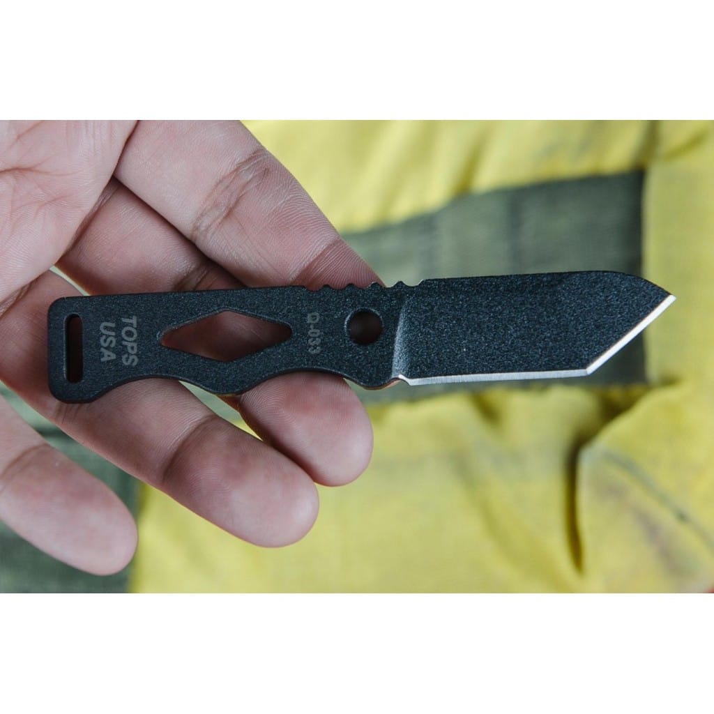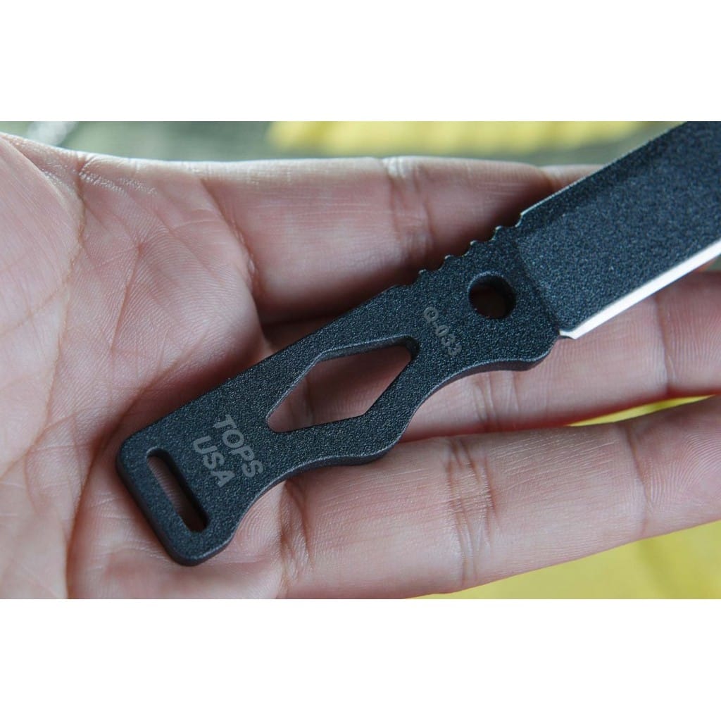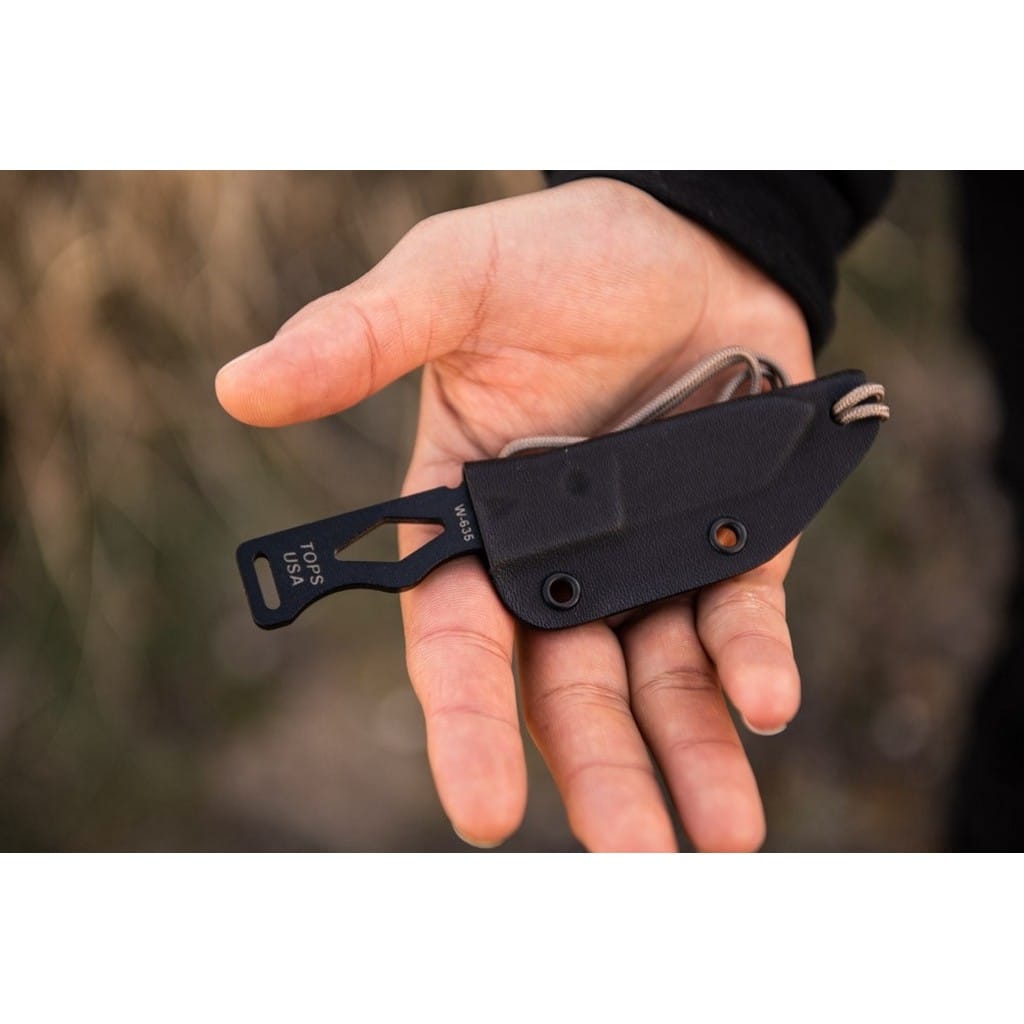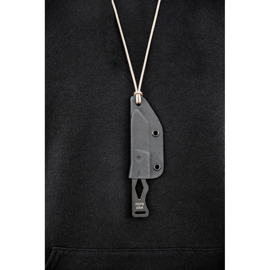Chico amerykańskiej firmy TOPS to najprawdopodobniej najlepszy mały element wyposażenia EDC, jaki można posiadać. Ten wytrzymały nóż o niedużej i lekkiej budowie zabierzemy ze sobą niemalże wszędzie. Do jego bezpiecznego i wygodnego transportowania wykorzystamy dołączoną do zestawu pochwę z kydexu. Posiada w komplecie paracord z zapięciem służący do przenoszenia całości na szyi, tak aby mieć narzędzie zawsze w zasięgu ręki. Głownia o taktycznym profilu Tanto została wykonana ze stali węglowej 1095 odpornej na wykruszenia i pęknięcia oraz niesprawiającej trudności w ostrzeniu. Pokryto ją powłoką Black Traction, jest to zastrzeżona nazwa wykończenia stosowana przez producenta TOPS, składająca się z hybrydowej bazy epoksydowej, z dodatkiem poliestru. Nakłada się ją proszkowo na klingę i zapieka w piecu w temperaturze około 210 stopni Celsjusza przez kilkanaście minut. Karbowany grzbiet ostrza stanowi stabilne podparcie dla kciuka podczas pracy. Konstrukcja full tang ze szkieletową rękojeścią, dzięki ergonomicznemu wyprofilowaniu dobrze układa się w dłoni. Użytkownik dla poprawy komfortu chwytu może owinąć ją linką, wedle indywidualnych preferencji, co ułatwiają otwory na jej powierzchni. Do zestawu dołączono gwizdek survivalowy o mocy 116 decybeli, który z łatwością schowamy w kieszeni lub doczepimy do wyposażenia. Dodatkowo dwie dziurki na krawędziach pochwy umożliwiają doczepienie narzędzia do kamizelki, plecaka lub innego ekwipunku. Misją TOPS Knives jest produkowanie noży najwyższej jakości, charakteryzujących się wydajnością i niezawodnością w terenie. Firma współpracuje z projektantami posiadającymi odpowiednie doświadczenie militarne i survivalowe. Ich produkty tworzą osoby z różnych środowisk, żołnierze Navy Seals, Rangersi, instruktorzy sztuk walki, członkowie zespołu SWAT, a nawet indiańscy eksperci od broni. Wszystkie narzędzia są wytwarzane i ręcznie wykańczane w zakładzie w USA, w sercu gór skalistych.