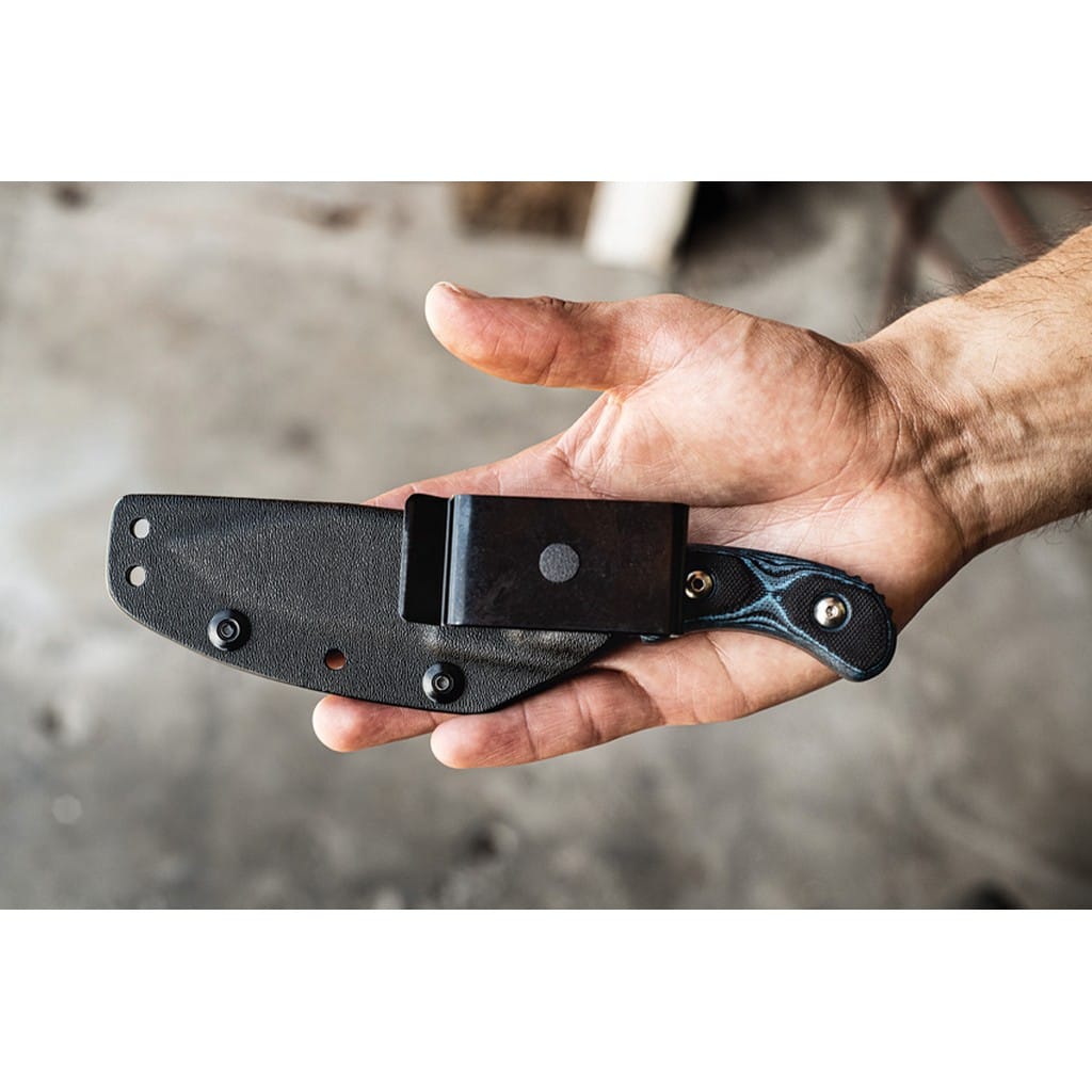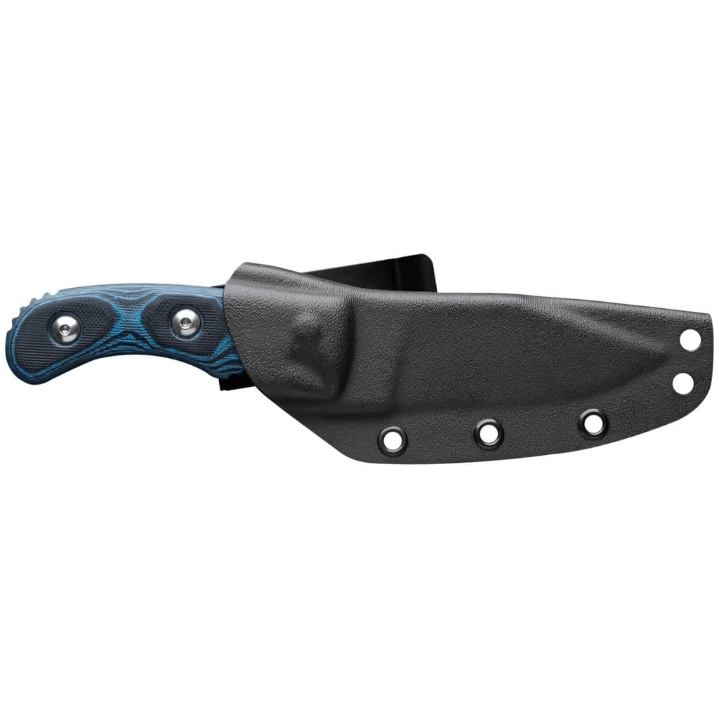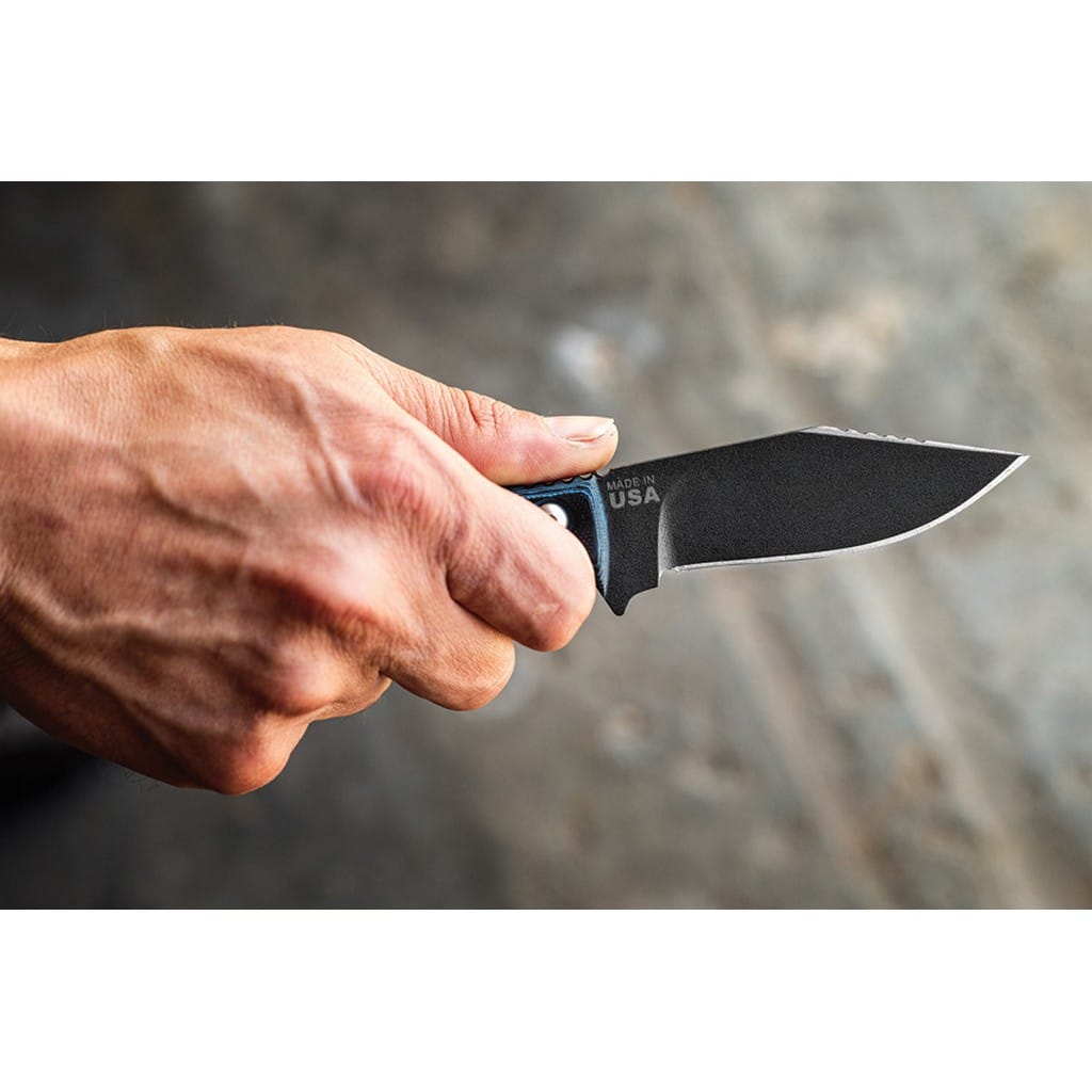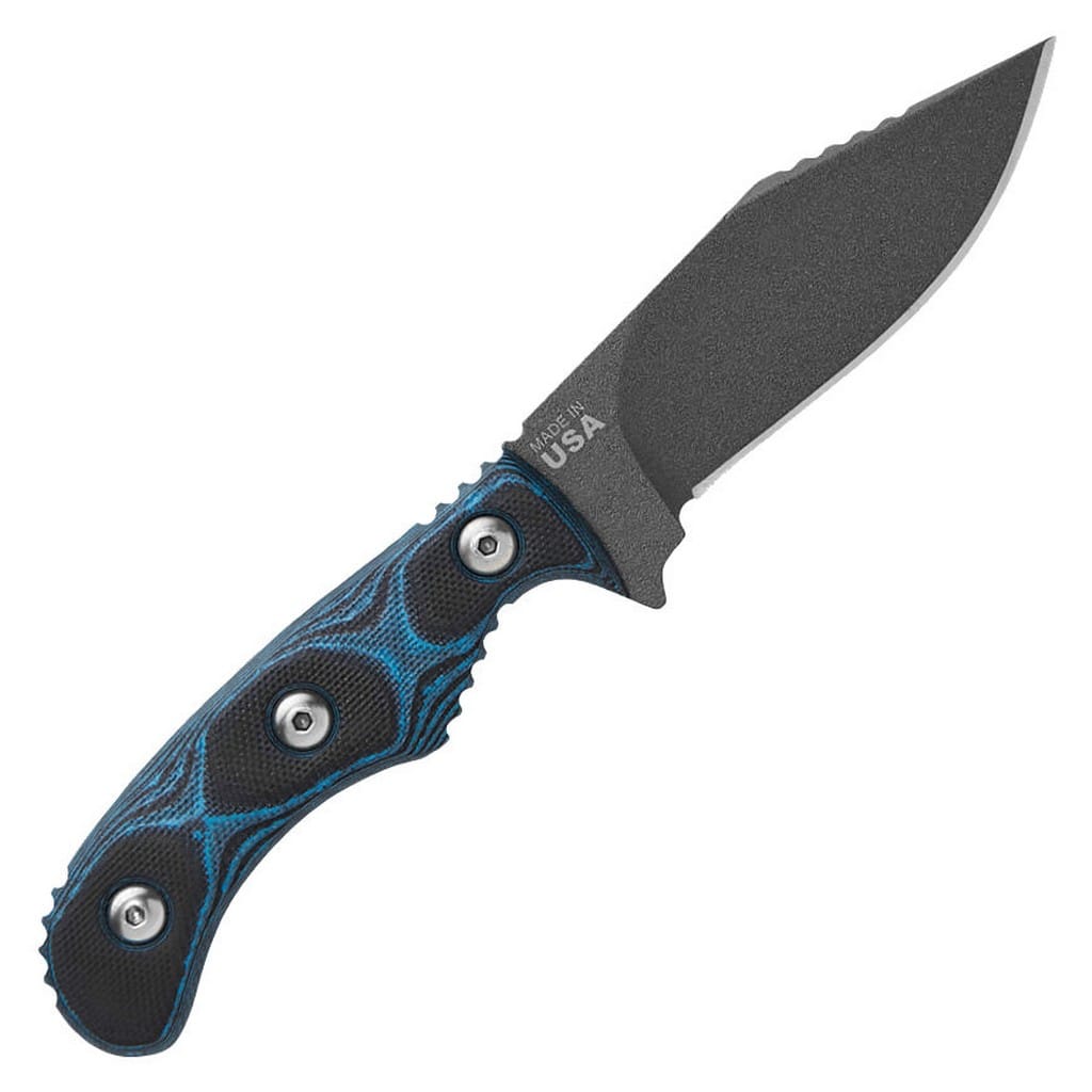 Delta Unit 3 to kompaktowy model zaprojektowany przez amerykańską firmę TOPS Knives do skutecznej i zwinnej pracy w terenie. Głownia o profilu Clip Point została wykonana ze stali węglowej 1095 odpornej na wykruszenia i pęknięcia oraz niesprawiającej trudności w ostrzeniu. W celu zabezpieczenia przed korozją i negatywnym działaniem czynników zewnętrznych pokryto ją szarą i antyodblaskową powłoką ochronną. Karbowany grzbiet klingi stanowi stabilne wsparcie dla kciuka i poprawia kontrolę nad narzędziem. Jelec czuwa przed przypadkowym zsunięciem się palców na krawędź tnącą i skaleczeniem. Model cechuje się konstrukcją full tang, co zwiększa jego wytrzymałość i możliwości podczas aktywności outdoorowych. Wyprofilowana rękojeść z odpornego na warunki atmosferyczne materiału G10 w czarno-niebieskim kolorze gwarantuje pewny chwyt w każdej sytuacji. Całość dopełnia pochwa z kydexu wraz z obrotowym klipsem. Pozwala na wygodne przenoszenie narzędzia blisko ciała lub przy wyposażeniu oraz pod dowolnym kątem. Do kompletu dołączono także gwizdek survivalowy o mocy 116 decybeli, który z powodzeniem możemy zamocować przy kluczach w formie breloka lub schować do kieszeni. Misją TOPS Knives jest produkowanie noży najwyższej jakości, charakteryzujących się wydajnością i niezawodnością podczas użytkowania. Firma współpracuje z projektantami posiadającymi odpowiednie doświadczenie militarne i survivalowe. Ich produkty tworzą osoby z różnych środowisk, żołnierze Navy Seals, Rangersi, instruktorzy sztuk walki, członkowie zespołu SWAT, a nawet indiańscy eksperci od broni. Wszystkie narzędzia są wytwarzane i ręcznie wykańczane w zakładzie w USA, w sercu gór skalistych.