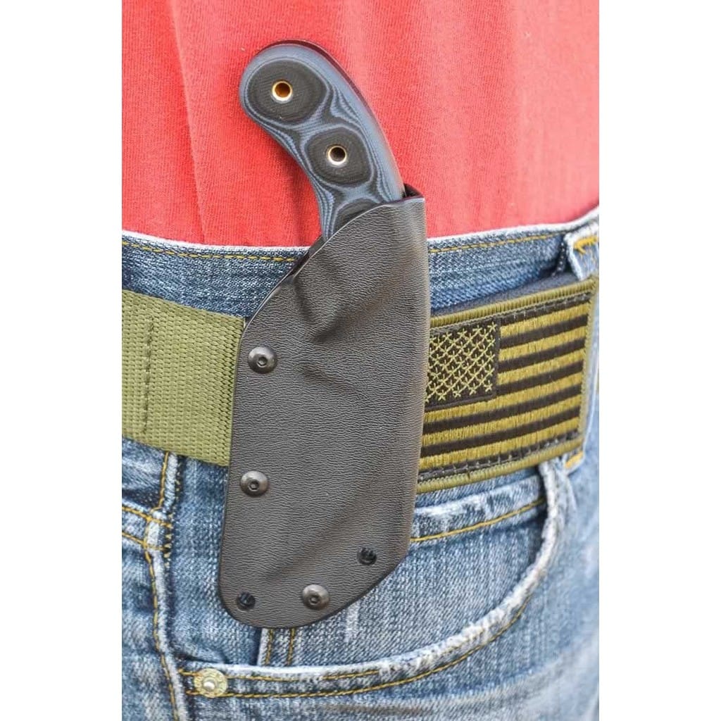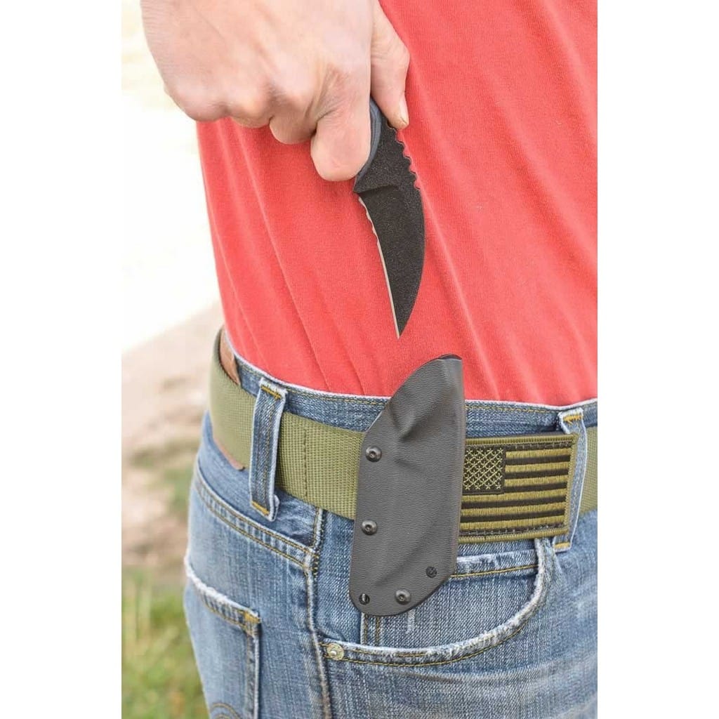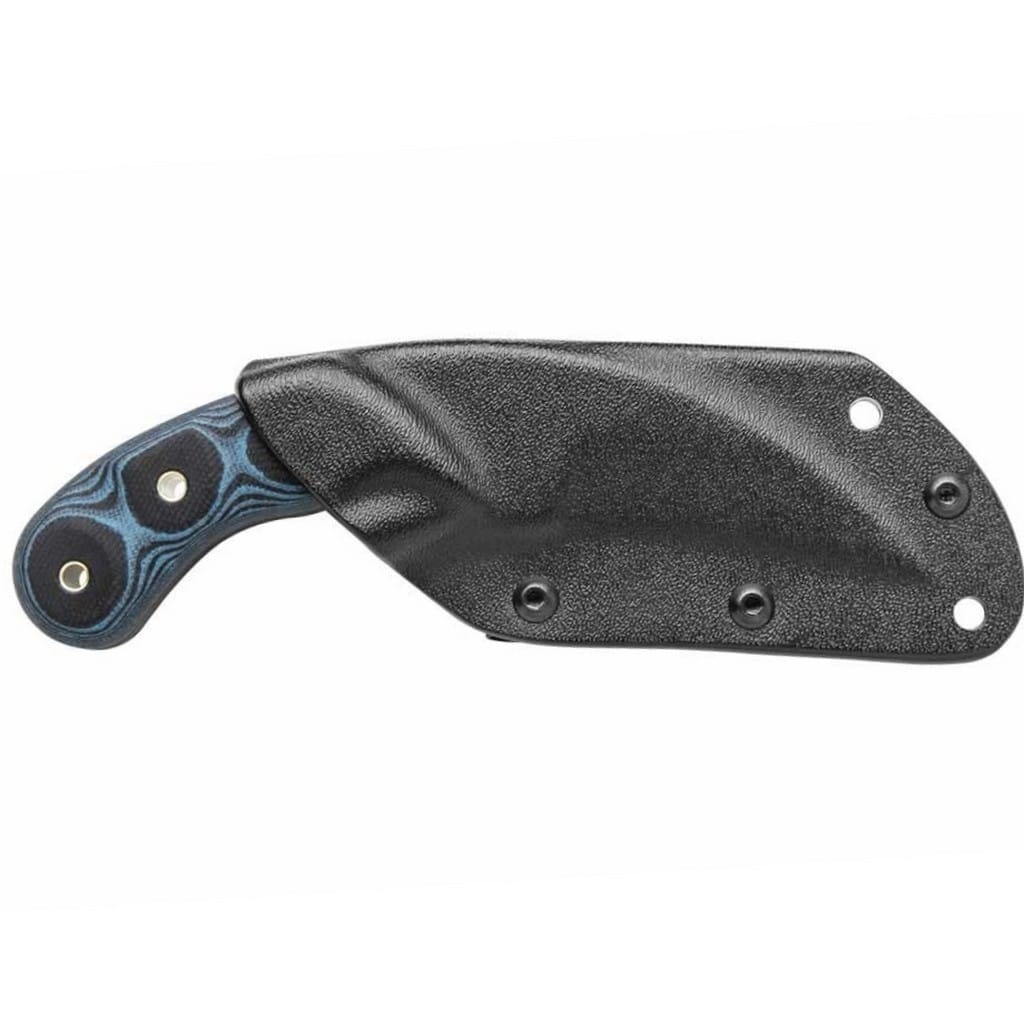 Devil's Claw zosał zaprojektowany przez Leo Espinozę, prezesa TOP Knives oraz światowej sławy knifemakera. Ten taktyczny model doskonale sprawdzi się w ręku profesjonalisty jako skuteczne narzędzie do zadań w terenie. Głownia, o zakrzywionym do dołu profilu Hawkbill, łączy zalety i uniwersalność gładkiej powierzchni z ząbkowaną. Umożliwia skuteczne cięcie zarówno miękkich przedmiotów, jak i twardych sznurów, taśm oraz innych włóknistych materiałów. Klingę wykonano ze stali węglowej 1095 odpornej na wykruszenia i pęknięcia, niesprawiającej trudności w ostrzeniu. W celu zabezpieczenia przed korozją i negatywnym działaniem czynników zewnętrznych pokryto ją antyodblaskową powłoką Black Traction. Jest to zastrzeżona nazwa wykończenia stosowana przez producenta, składającą się z hybrydowej bazy epoksydowej i poliestru. Nakłada się ją proszkowo i zapieka w piecu przez kilkanaście minut, w temperaturze około 210 stopni Celsjusza. Karbowany grzbiet ostrza stanowi stabilne wsparcie dla kciuka i poprawia kontrolę nad nożem. Model cechuje się konstrukcją full tang, co zwiększa jego wytrzymałość i możliwości podczas aktywności outdoorowych. Wyprofilowana rękojeść z odpornego na warunki atmosferyczne materiału G10 w czarno-niebieskim kolorze gwarantuje pewny chwyt w każdej sytuacji. Całość dopełnia pochwa z kydexu wraz z wielopozycyjnym klipsem z metalu, pozwalającym na wygodne przenoszenie narzędzia blisko ciała. Do kompletu dołączono także gwizdek survivalowy o mocy 116 decybeli, który z powodzeniem możemy zamocować przy kluczach w formie breloka lub schować do kieszeni. Misją TOPS Knives jest produkowanie noży najwyższej jakości, charakteryzujących się wydajnością i niezawodnością podczas użytkowania. Firma współpracuje z projektantami posiadającymi odpowiednie doświadczenie militarne i survivalowe. Ich produkty tworzą osoby z różnych środowisk, żołnierze Navy Seals, Rangersi, instruktorzy sztuk walki, członkowie zespołu SWAT, a nawet indiańscy eksperci od broni. Wszystkie narzędzia są wytwarzane i ręcznie wykańczane w zakładzie w USA, w sercu gór skalistych.