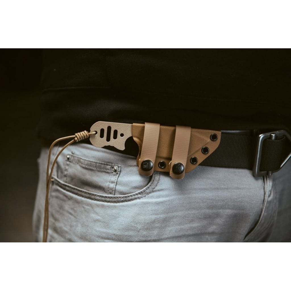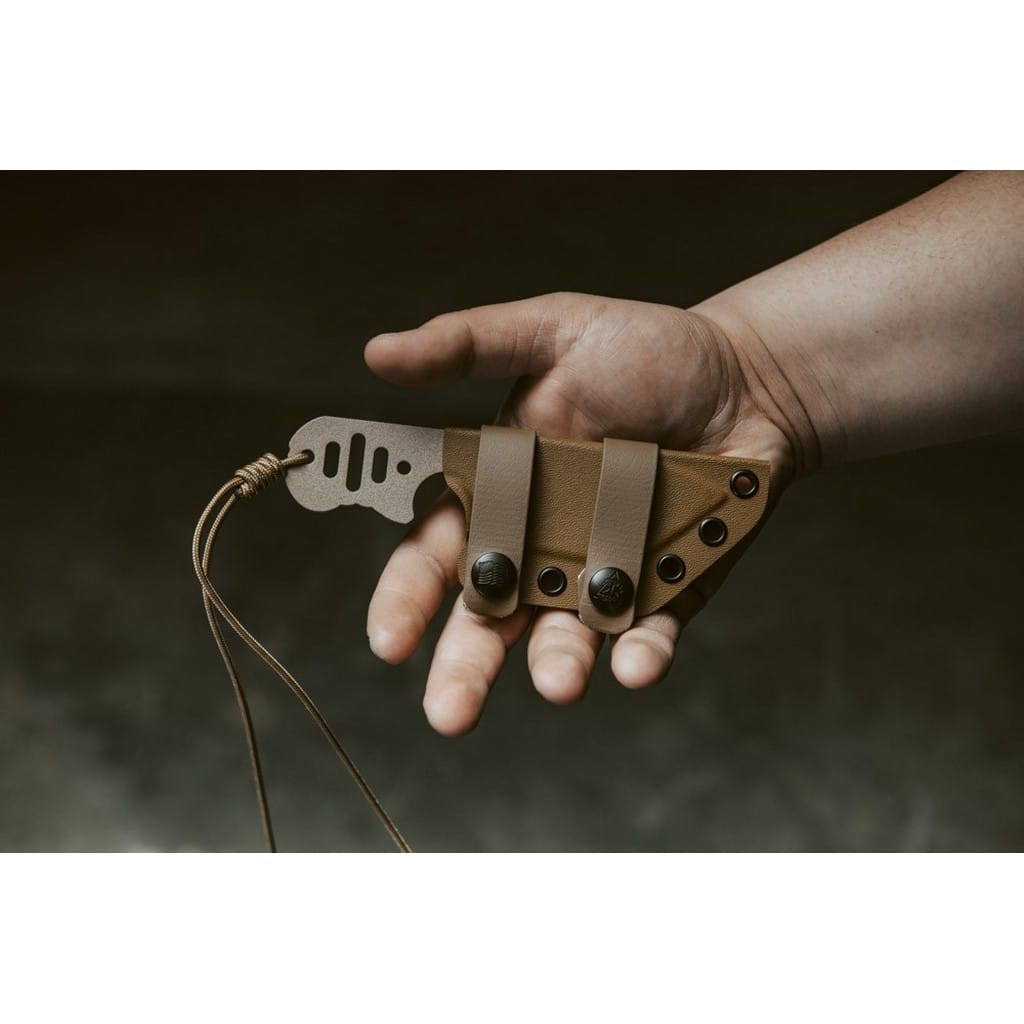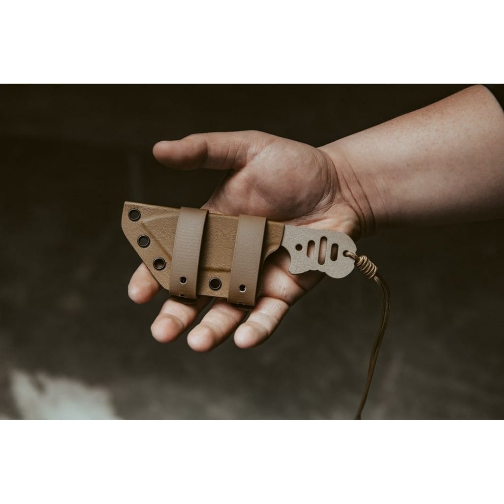 Field Duty Extreme, a w skrócie FDX, to kompaktowy nóż EDC zaprojektowany przez amerykańską firmę TOPS Knives. Model doskonale sprawdzi się do aktywności na świeżym powietrzu, a także w warunkach pustynnych jako dodatkowe wyposażenie żołnierza. Funkcjonalne, szerokie ostrze o profilu Tanto zostało wykonane ze stali węglowej 1095 odpornej na wykruszenia i pęknięcia oraz niesprawiającej trudności w ostrzeniu. W celu zabezpieczenia przed korozją i negatywnym działaniem czynników zewnętrznych pokryto głownię antyodblaskową powłoką ochronną w beżowym kolorze. Karbowany grzbiet klingi stanowi stabilne wsparcie dla kciuka, co poprawia kontrolę nad narzędziem. Konstrukcja full tang ze szkieletową rękojeścią, dzięki głębokiemu wyprofilowaniu pod palec świetnie układa się w dłoni. Użytkownik dla poprawy komfortu chwytu może owinąć ją paracordem, wedle indywidualnych potrzeb i preferencji. Na zakończeniu umieszczono otwór z przełożoną linką do wygodnego wyciągania noża. Model nie sprawia trudności w transportowaniu, gdyż w zestawie znajduje się pochwa z kydexu wraz z dwoma paskami mocującymi. Dzięki nim możemy przytroczyć narzędzie do paska lub wyposażenia i bezpiecznie przenosić blisko ciała. W komplecie znajduje się także gwizdek survivalowy o mocy 116 decybeli, który z powodzeniem możemy doczepić do kluczy w formie breloka lub schować do kieszeni. Misją TOPS Knives jest produkowanie noży najwyższej jakości, charakteryzujących się wydajnością i niezawodnością w terenie. Firma współpracuje z projektantami posiadającymi odpowiednie doświadczenie militarne i survivalowe. Ich produkty tworzą osoby z różnych środowisk, komandosi Navy Seals, Rangersi, instruktorzy sztuk walki, członkowie zespołu SWAT, a nawet indiańscy eksperci od broni. Wszystkie narzędzia są wytwarzane i ręcznie wykańczane w fabryce w USA, w sercu gór skalistych.