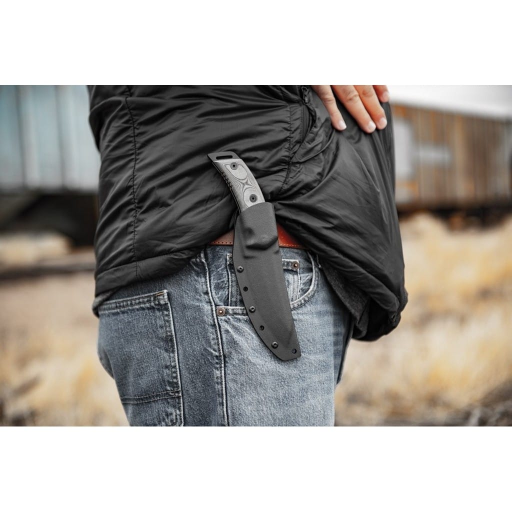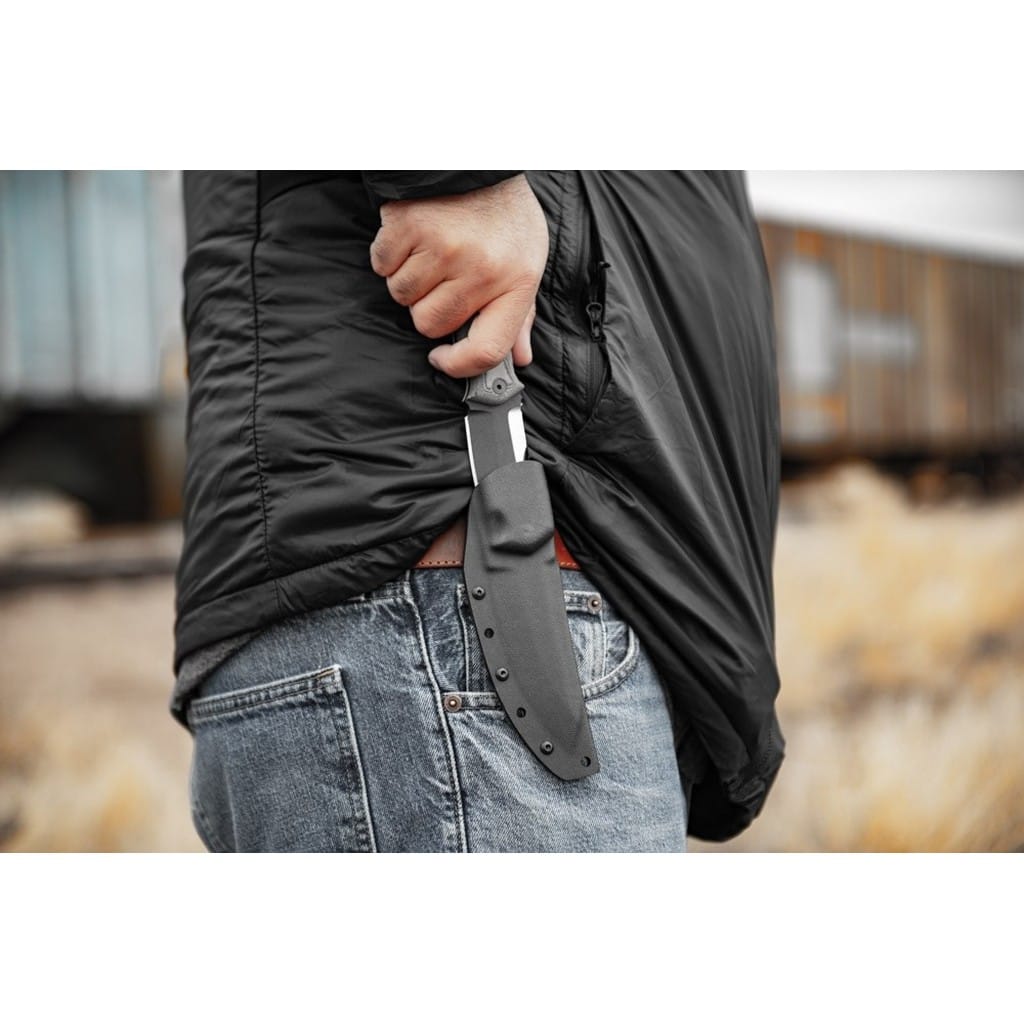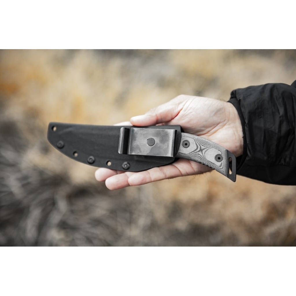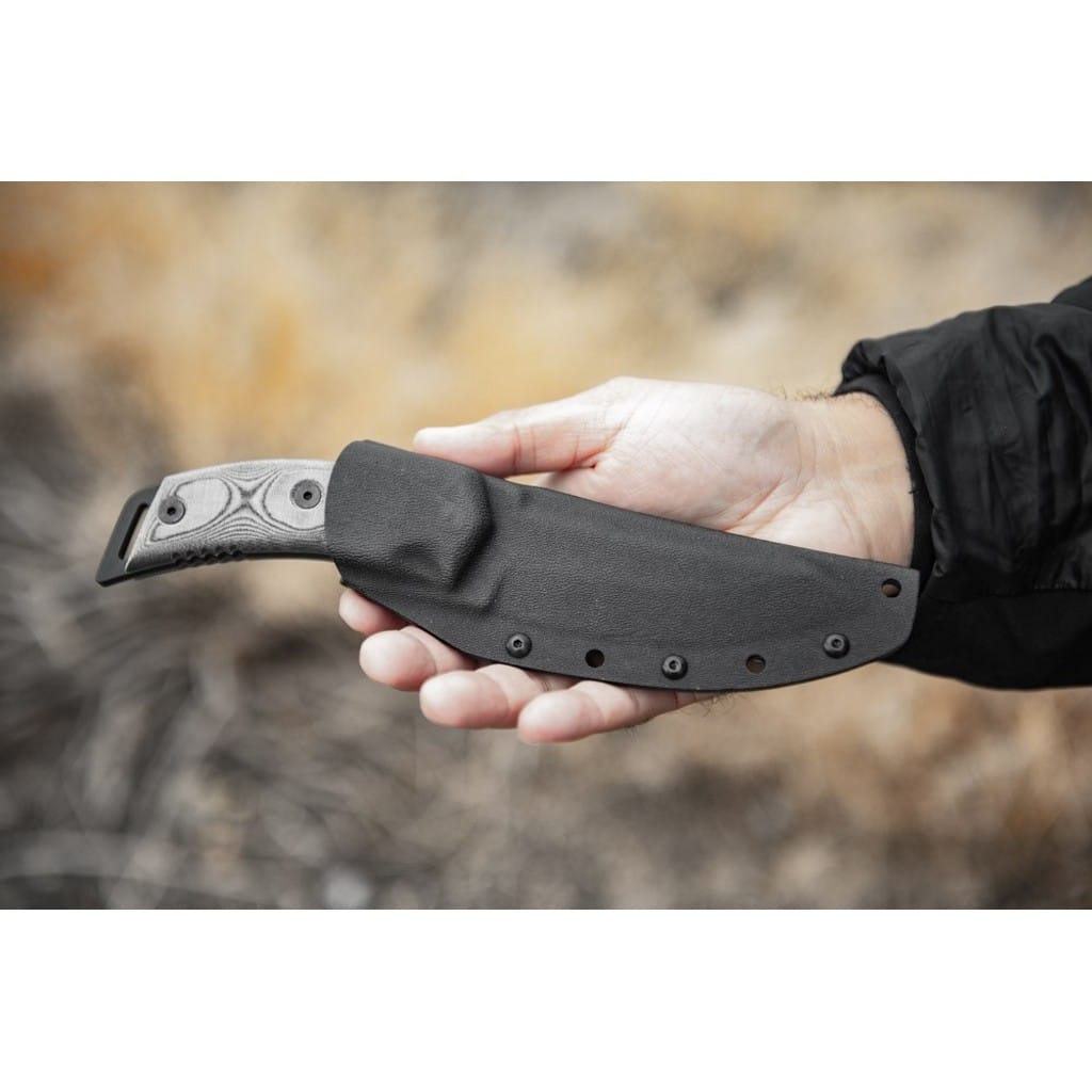 Jerry VanCook, utalentowany instruktor samoobrony, przy współpracy z amerykańską firmą TOPS Knives stworzył taktyczny model Loner. Nóż odznaczają ostrzem, gdzie górna krawędź tnąca jest również naostrzona, co czyni z niego wyjątkowe narzędzie do skutecznego cięcia. Głownia została wykonana ze stali węglowej 1095 odpornej na wykruszenia i pęknięcia oraz niesprawiającej trudności w ostrzeniu. W celu zabezpieczenia przed korozją i negatywnym działaniem czynników zewnętrznych pokryto ją antyodblaskową powłoką Black Traction. Jest to zastrzeżona nazwa wykończenia stosowana przez producenta, składającą się z hybrydowej bazy epoksydowej i poliestru. Nakłada się ją proszkowo na klingę i zapieka w piecu przez kilkanaście minut, w temperaturze około 210 stopni Celsjusza. Model cechuje się konstrukcją full tang zwiększającą wytrzymałość i możliwości eksploatacji noża w terenie. Wyprofilowane okładziny chwytu z Micarty o fakturze płótna pewnie układają się w dłoni gwarantując komfort użytkowania. Na zakończeniu umieszczono duży otwór pozwalający na przełożenie paracordu i stworzenie oplotu na nadgarstek. Całość dopełnia pochwa z kydexu wraz z obrotowym klipsem. Pozwala na wygodne przenoszenie narzędzia blisko ciała lub przy wyposażeniu oraz pod dowolnym kątem. Dodatkowo do kompletu dołączono gwizdek survivalowy o mocy 116 decybeli, który z powodzeniem możemy zamocować przy kluczach w formie breloka lub schować do kieszeni. Misją TOPS Knives jest produkowanie noży najwyższej jakości, charakteryzujących się wydajnością i niezawodnością podczas pracy. Firma współpracuje z projektantami posiadającymi odpowiednie doświadczenie militarne i survivalowe. Ich produkty tworzą osoby z różnych środowisk, żołnierze Navy Seals, Rangersi, instruktorzy sztuk walki, członkowie zespołu SWAT, a nawet indiańscy eksperci od broni. Wszystkie narzędzia są wytwarzane i ręcznie wykańczane w zakładzie w USA, w sercu gór skalistych.