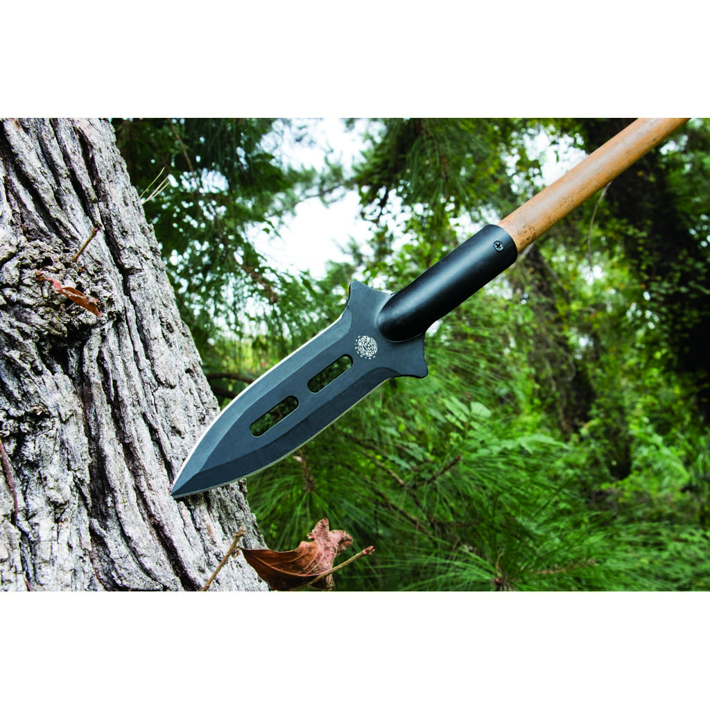 Colombian Warrior Spear Head firmy United Cutlery to bardzo wytrzymały nóż survivalowy, który wyglądem przypomina duży grot włóczni. Wykonanie z jednego kawałka wysokowęglowej stali SK-5 sprawia, że jest on bardzo wytrzymały i nie ma prawa się złamać. Pokryty czarną oksydą zapewnia ochronę przed korozją i odblaskami. Zastosowanie pustej rękojeści w środku znacznie zmniejsza wagę konstrukcji, co nie powoduje dużego obciążenia dla użytkownika. W rękojeści znajduje się otwór, który pozwala na nadzianie noża na kij, dzięki czemu otrzymamy włócznię. Nóż z łatwością można dopasować do indywidualnych preferencji użytkowania. Idealnie nadaje się na biwak, na wędrówkę do lasu czy polowanie.