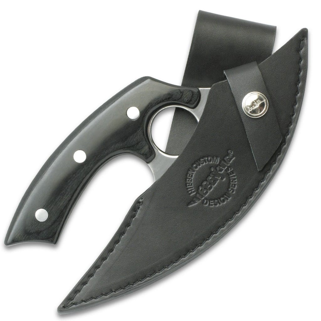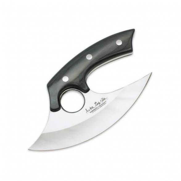 Noże Ulu są używane od starożytności, a model GH5074 zaprojektowany przez Gila i Wesa Hibbena dla firmy United Cutlery jest elegancką i nowoczesną interpretacją tego narzędzia. Ostrze zostało wykonane ze stali nierdzewnej 5Cr15 i wypolerowane na lustro co stanowi doskonały kontrast z impregnowaną na czarno drewnianą rękojeścią. Odpowiednie wyprofilowanie chwytu pozwala na intuicyjne ułożenie dłoni i komfort pracy. Całość tworzy niezwykle przyjemny efekt wizualny, choć nóż nie stanowi eksponatu i zdecydowanie świetnie sprawdzi się zarówno w kuchni jak i w terenie z dala od domu. W zestawie znajduje się skórzana pochwa wyposażona w szlufkę, która umożliwia przełożenia paska i przenoszenie narzędzia blisko ciała.