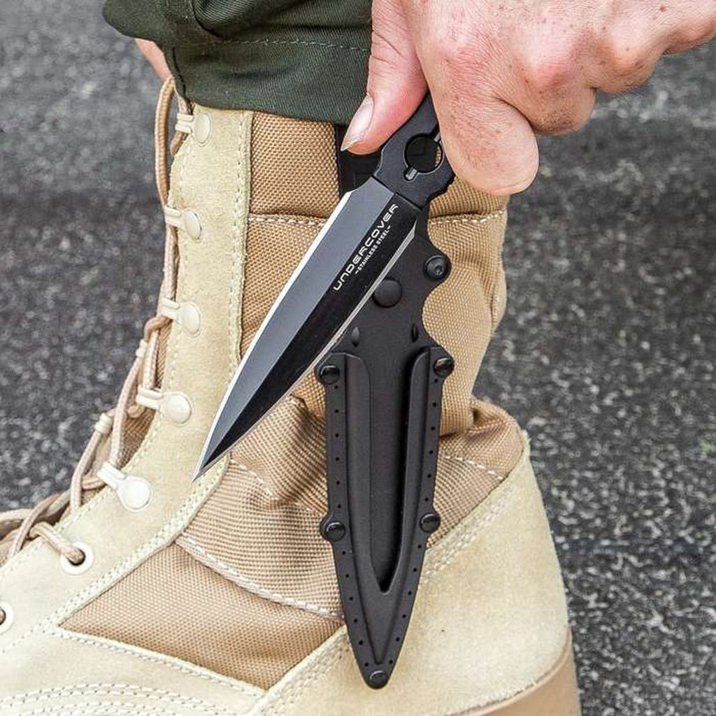 CIA Stinger amerykańskiej firmy United Cutlery to model należący do serii Undercover składającej się z niezwykle poręcznych i lekkich noży do codziennego noszenia. UC3344 został wykonany z jednego kawałka stali nierdzewnej 3Cr13 i pokryty czarną oksydą zabezpieczającą przed korozją i odblaskami. Agresywna głownia typu sztylet posiada obustronnie naostrzoną krawędź tnącą o właściwościach penetracyjnych. Otwory na rękojeści zmniejszają ciężar konstrukcji, co ma duże znaczenie w codziennym noszeniu, a jej karbowane krawędzie wzmacniają chwyt. Model zaprojektowano do skrytego przenoszenia w cholewie buta, co umożliwia pochwa z formowanego tworzywa wyposażona w demontowalny klips mocujący. Nóż charakteryzuje się niewielką wagą i smukłą sylwetką, dzięki czemu z łatwością możemy go ukryć i mieć zawsze przy sobie gotowego do pracy.