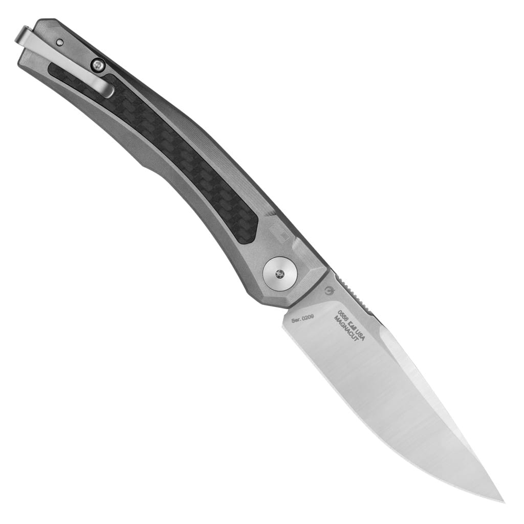 Model 0556 to automatyczny nóż dżentelmeński o smukłym profilu i wysublimowanym designie. Zaprojektowany przez firmę Zero Tolerance dla użytkowników poszukujących lekkiego, lecz pełnowymiarowego foldera, zrobionego z najwyższej jakości materiałów. Posiada indywidualny numer seryjny, tak jak pozostałe egzemplarze z oferty producenta. Stanowi idealną propozycję dla kolekcjonerów ceniących niezawodność i szybkość działania. Ostrze o profilu Drop Point wykonano z amerykańskiej stali proszkowej klasy premium CPM MagnaCut zapewniającej doskonałą równowagę pomiędzy ostrością, wytrzymałością i odpornością na korozję. Elementy wypukłe na głowni wykończono metodą Stonewash, zaś wklęsłe metodą Satin pozostawiającą drobne ryski lekko matujące powierzchnię, dające efekt niedokładnego wypolerowania. Karbowany grzbiet klingi daje stabilne wsparcie dla kciuka, co stabilizuje chwyt i pomaga przy precyzyjnych zadaniach. Model rozkłada się w ułamku sekundy, wystarczy nacisnąć stylowy przycisk w kształcie trapezu. Jego karbowana faktura poprawia przyczepność do palca gwarantując bezproblemowe użycie, nawet gdy dłoń jest wilgotna. Bezpieczeństwo zapewnia blokada Button Lock chroniąca przed przypadkowym złożeniem się narzędzia podczas pracy. Tytanową rękojeść wzbogacono o wkładki z eleganckiego włókna węglowego, które dodają charakteru całości. Konstrukcję uzupełnia dwupozycyjny klips mocujący do głębokiego przenoszenia noża w kieszeni spodni.