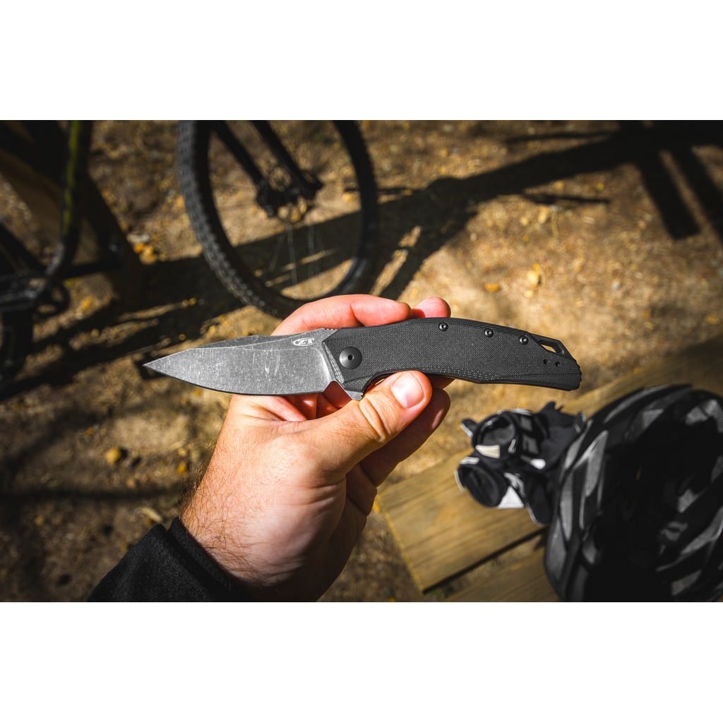 Model 0357 firmy Zero Tolerance stanowi doskonały przykład tego, jak prostota może iść w parze z najwyższą jakością. Jest to solidny nóż roboczy stworzony do pracy w trudnych warunkach. Głownia o profilu Drop Point została zrobiona z amerykańskiej stali nierdzewnej klasy premium CPM 20CV, która zapewnia wyjątkową twardość, odporność na zużycie oraz długo utrzymuje ostrość. Wykończenie jej metodą Stonewash pozostawia nieregularną powłokę dobrze maskującą rysy powstające podczas eksploatacji. Zastosowany system wspomagania wysuwania ostrza umożliwia szybkie i płynne rozłożenie foldera jedną ręką przy wykorzystaniu flippera. Blokada Liner Lock dba o bezpieczeństwo użytkownika chroniąc przed przypadkowym złożeniem się narzędzia, gdy jest w użyciu. Karbowany grzbiet klingi daje stabilne podparcie dla kciuka, co ułatwia wykonywanie precyzyjnych zadań. Ergonomicznie wyprofilowana rękojeść z tworzywa G10 o antypoślizgowej fakturze gwarantuje pewny chwyt w każdej sytuacji. Na zakończeniu znajduje się otwór pozwalający na przełożenie paracordu lub breloka ozdobnego. Konstrukcję uzupełnia dwupozycyjny klips mocujący do dyskretnego przenoszenia foldera w kieszeni spodni. Model w całości wyprodukowano w fabryce ZT w Tualatin w stanie Oregon, USA, dzięki czemu jest niezawodnym narzędziem, które sprawdzi się w każdych warunkach. Niezależnie od tego, czy dopiero rozpoczynasz swoją przygodę z nożami ZT, czy po prostu szukasz idealnego uzupełnienia do swojej kolekcji.