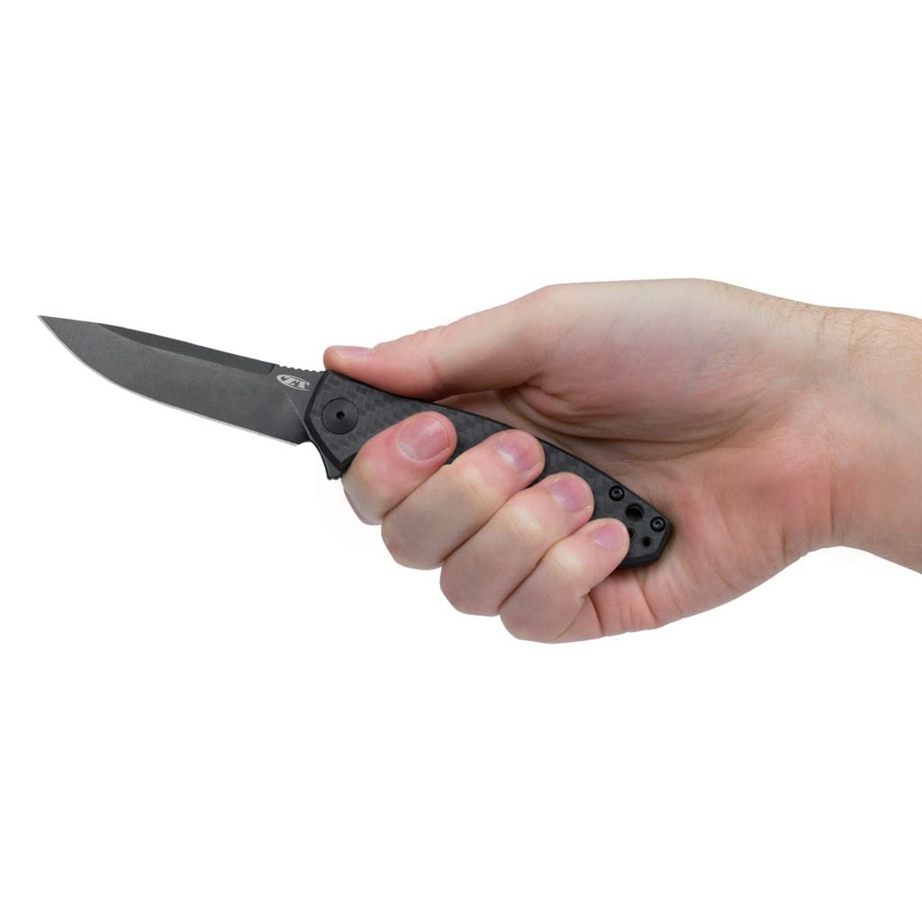 Kompaktowy model 0450 to efekt udanej współpracy firmy Zero Tolerance ze znanym i utalentowanym projektantem Dmitrym Sinkevich. Ostrze o profilu Drop Point zrobiono z amerykańskiej stali klasy premium CPM S35VN z odpowiednio dobranymi proporcjami wanadu i niobu, które wpływają na jej twardość oraz wytrzymałość. Głownia została pokryta czarną powłoką Cerakote. Jest to ceramiczna i opatentowana formuła na bazie polimerów oferująca odporność na zarysowania, korozję, ciepło i chemikalia. Szybkie i płynne rozłożenie foldera jedną ręką przy wykorzystaniu flippera, pełniącego jednocześnie funkcję jelca, umożliwia system łożysk kulkowych KVT (Kershaw Velocity Technology). Solidna i niezawodna blokada Frame Lock, wzbogacona o utwardzoną, stalową wkładkę lockbar czuwa nad bezpieczeństwem, gdy narzędzie jest w użyciu. Karbowany grzbiet klingi daje stabilne podparcie dla kciuka, co ułatwia wykonywanie zadań wymagających większej precyzji. Rękojeść stanowi eleganckie włókno węglowe z szarymi elementami na jednej ze stron oraz tytanowa rama na drugiej. Ergonomiczne wyprofilowanie i frezowane krawędzie gwarantują pewny chwyt w każdej sytuacji. Na zakończeniu znajduje się otwór umożliwiający przełożenie paracordu lub breloka ozdobnego. Całość dopełnia dwupozycyjny klips mocujący do wygodnego przenoszenia foldera w kieszeni spodni. Kolekcjonerski model 0450, wyprodukowany w USA, łączy w sobie nie tylko wysoką jakość wykonania, ale także nowoczesny design i funkcjonalność. Jest to idealny wybór zarówno dla entuzjastów noży, jak i osób szukających niezawodnego narzędzia na co dzień.