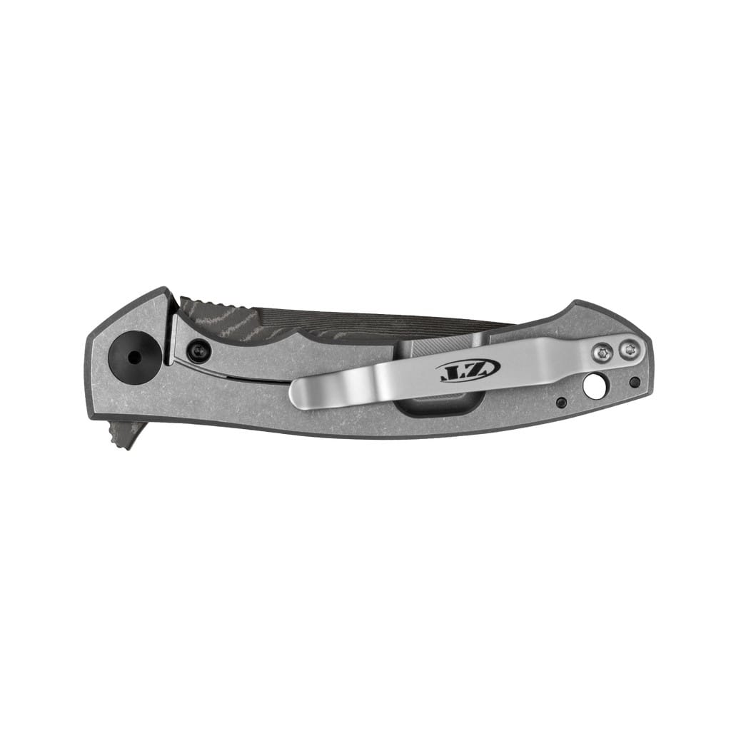 Kompaktowy model 0450CFDAMS to efekt udanej współpracy Zero Tolerance ze znanym i utalentowanym projektantem Dmitrym Sinkevich. Ostrze o profilu Drop Point zrobiono z amerykańskiej stali damasceńskiej firmy Vegas Forge. Unikatowe wykończenie głowni świetnie maskuje niedoskonałości i zarysowania powstające podczas eksploatacji. Szybkie i płynne rozłożenie foldera jedną ręką przy wykorzystaniu flippera, pełniącego jednocześnie funkcję jelca, umożliwia system łożysk kulkowych KVT (Kershaw Velocity Technology). Solidna i niezawodna blokada Frame Lock, wzbogacona o utwardzoną, stalową wkładkę lockbar, czuwa nad bezpieczeństwem, gdy narzędzie jest w użyciu. Karbowany grzbiet klingi daje stabilne wsparcie dla kciuka, ułatwiając wykonywanie zadań wymagających większej precyzji. Rękojeść stanowi eleganckie, wielowarstwowe włókno węglowe na jednej ze stron oraz tytanowa rama na drugiej. Ergonomiczne wyprofilowanie i frezowane krawędzie gwarantują pewny chwyt w każdej sytuacji. Na zakończeniu znajduje się otwór umożliwiający przełożenie paracordu lub breloka ozdobnego. Całość dopełnia dwupozycyjny klips mocujący do wygodnego przenoszenia foldera w kieszeni spodni. Ten kolekcjonerski model 0450CFDAMS wyprodukowany w USA to nie lada gratka dla wszystkich miłośników noży. Łączy wysoką jakość wykonania z nowoczesnym i funkcjonalnym designem.