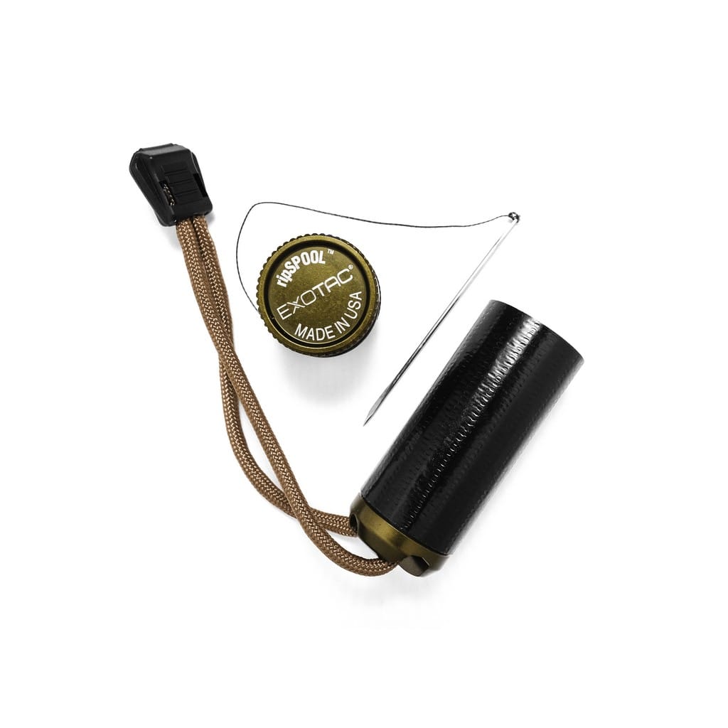 W sytuacji, gdy znajdujemy się z dala od domu a nasz bagaż nie jest w stanie zmieścić wszystkich potrzebnych akcesoriów serwisowych z pomocą przychodzi RipSPOOL od amerykańskiej firmy Exotac. Jest to lekki zestaw naprawczy posiadający taśmę do łatania dziur czy tworzenia plastra na ranę, igłę z dużym oczkiem oraz cienką nylonową nić, która może posłużyć nie tylko do szycia, ale również jako żyłka wędkarska. Do zestawu została dołączona linka z paracordu posiadająca we wnętrzu łatwopalny rdzeń palący się jak knot świecy przez około 1 minutę. Czas ten w zupełności wystarczy na rozpalenie ogniska. Rdzeń bardzo łatwo zapala się od iskry przy wykorzystaniu noża lub krzesiwa.